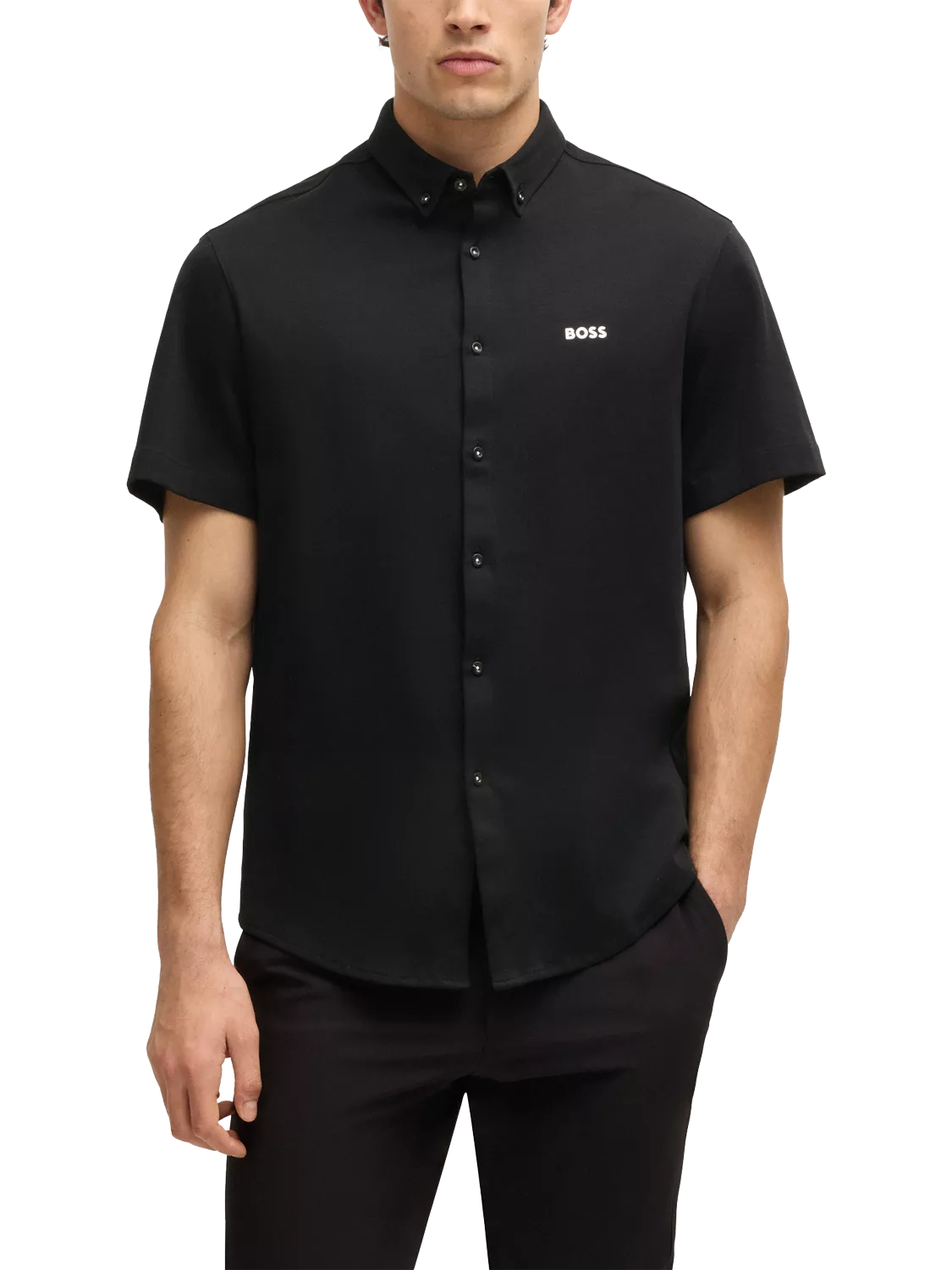 Soft and comfortable jersey shirt, wrinkle free with Boss logo transfer on the chest. Breathable, 4-way stretch fabric guarantees freedom of movement.