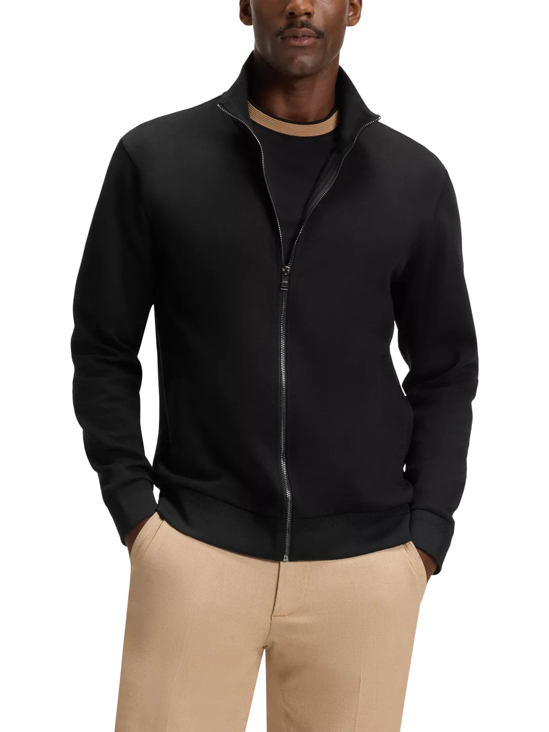 A practical sweatshirt from BOSS with a high neckline and a zip-fastened front for versatile styling.
