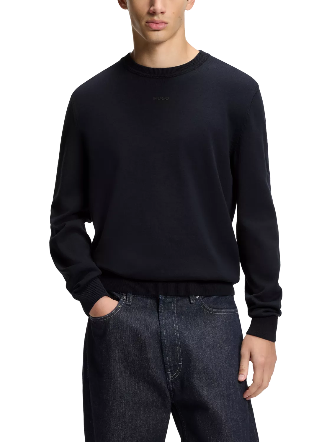 A simple BOSS jumper with signature branding across the chest. A slim fit, combined with ribbed cuffs and a waistband, ensures the best fit. Made from breathable cotton for comfort.