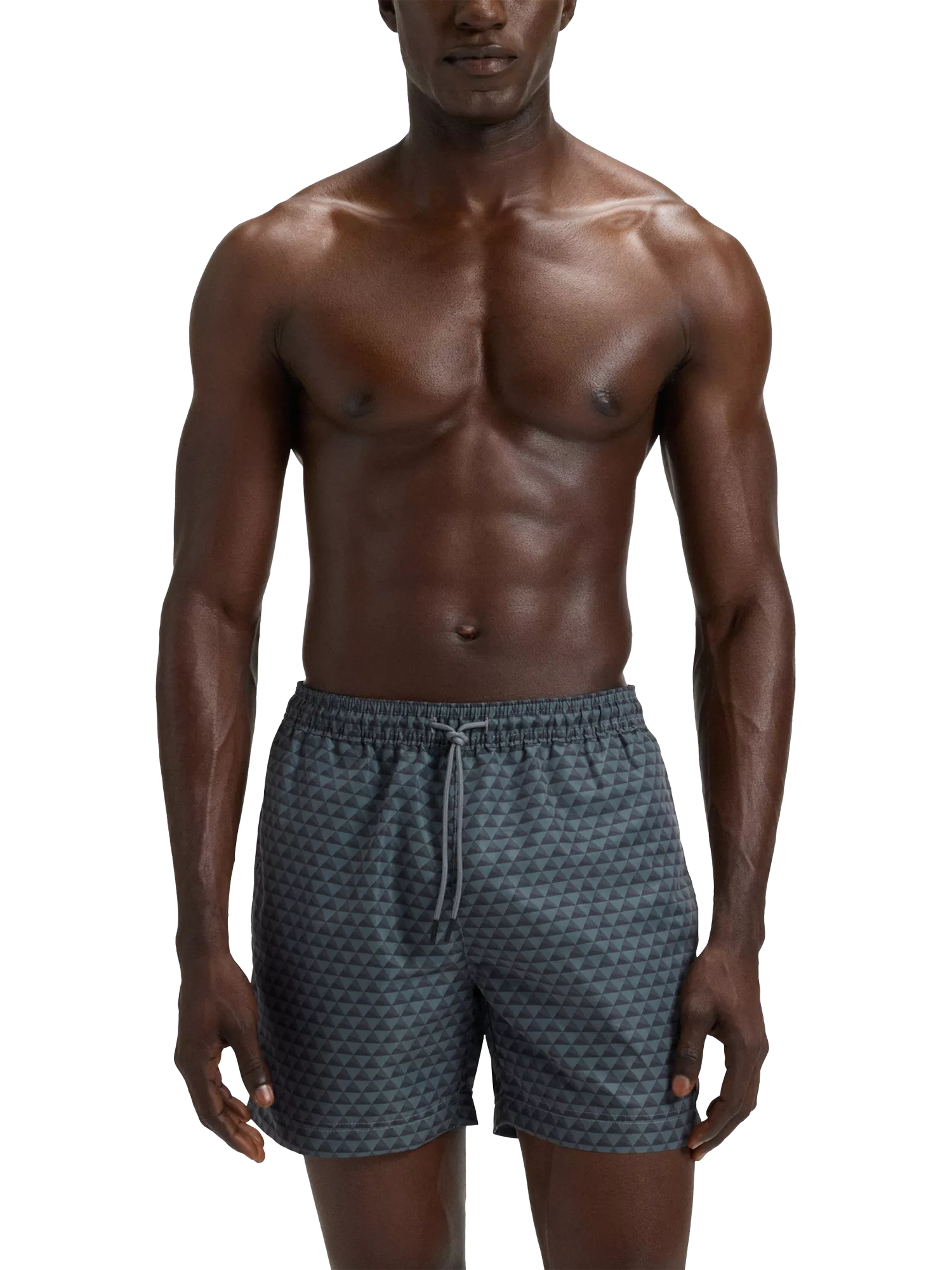 Designed for comfort and style, these swim shorts feature a vibrant mini pattern print across the fabric. They include an elastic waistband with functional drawcords finished with solid cord ends.