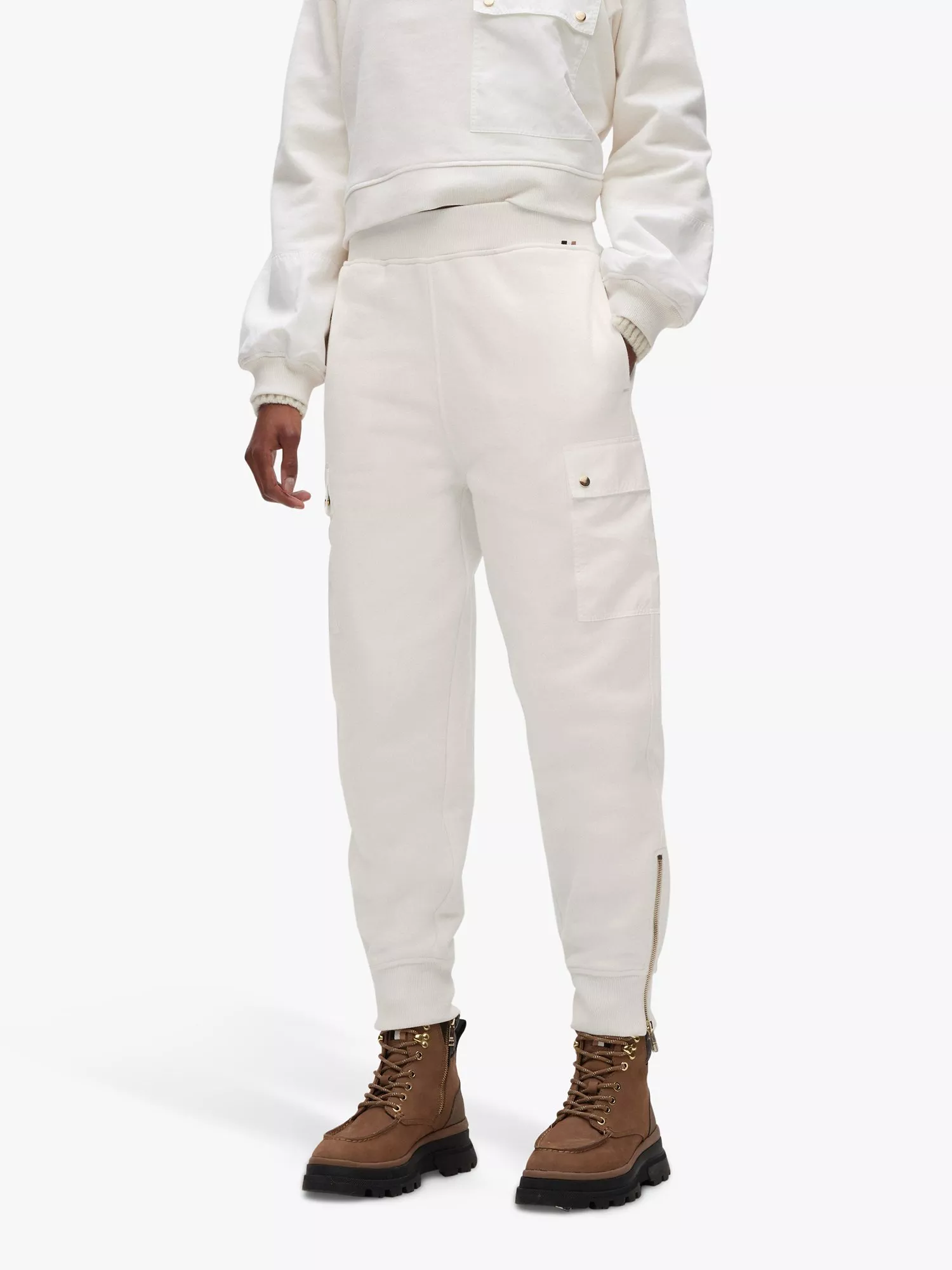 Tapered through the leg and designed with zips at the side, these mid rise cargo trousers from HUGO BOSS are made with comfort in mind thanks to their soft cotton composition and are cropped for a fresh look.