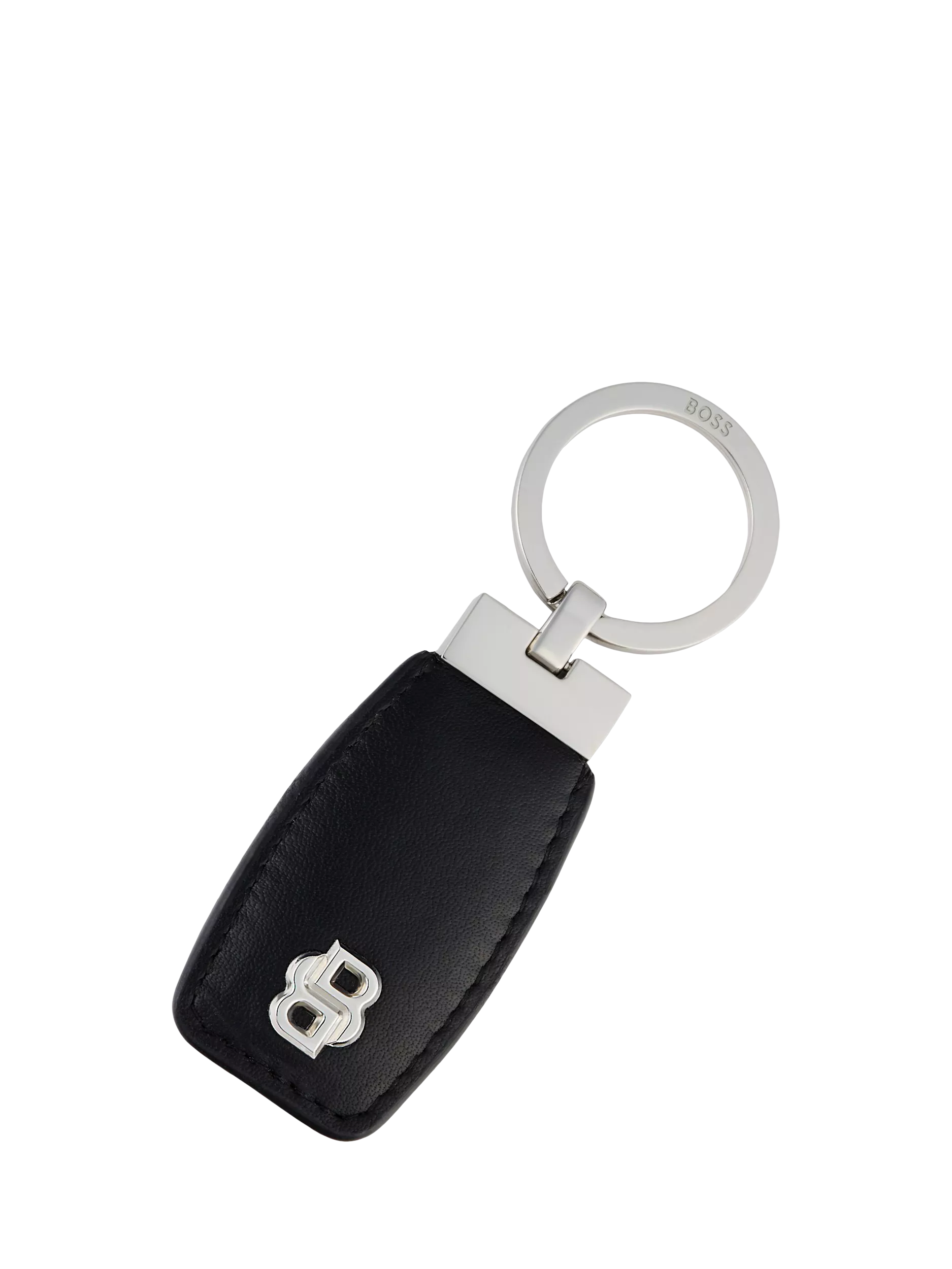 HUGO BOSSDouble B Leather Keyring, Black / Chrome