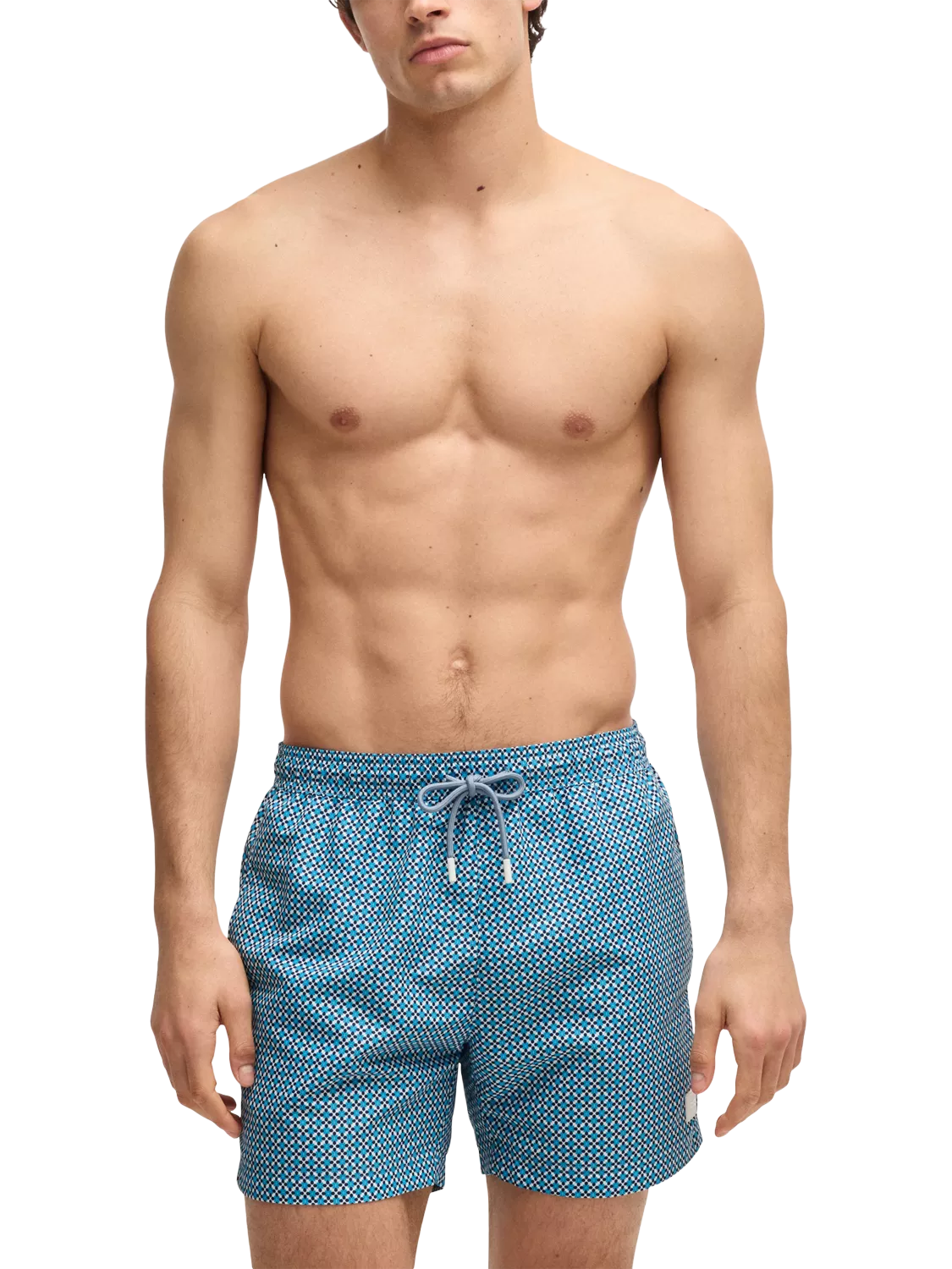 BOSS incorporates a geometric print and subtle logo detailing to create a pair of shorts that will have you looking for excuses to take another dip.