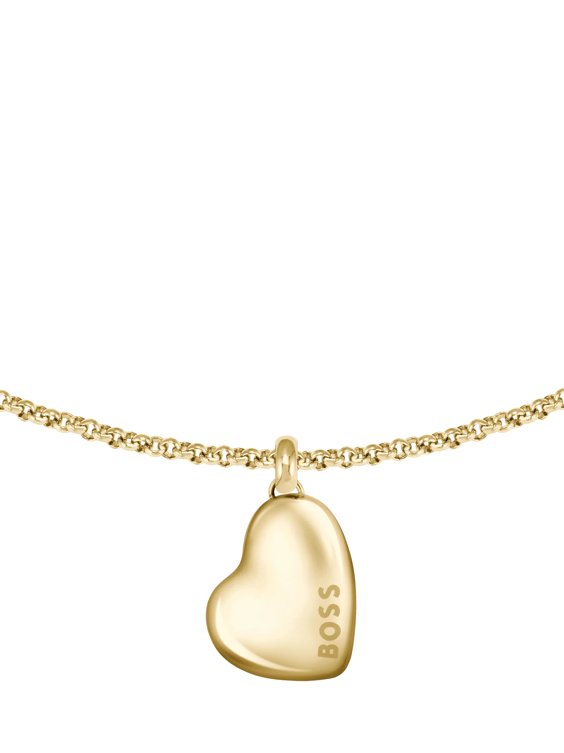 BOSS Ladies bracelet from the Honey collection. Featuring a stainless steel fine feminine chain with organic-shaped heart pendant with BOSS branding.