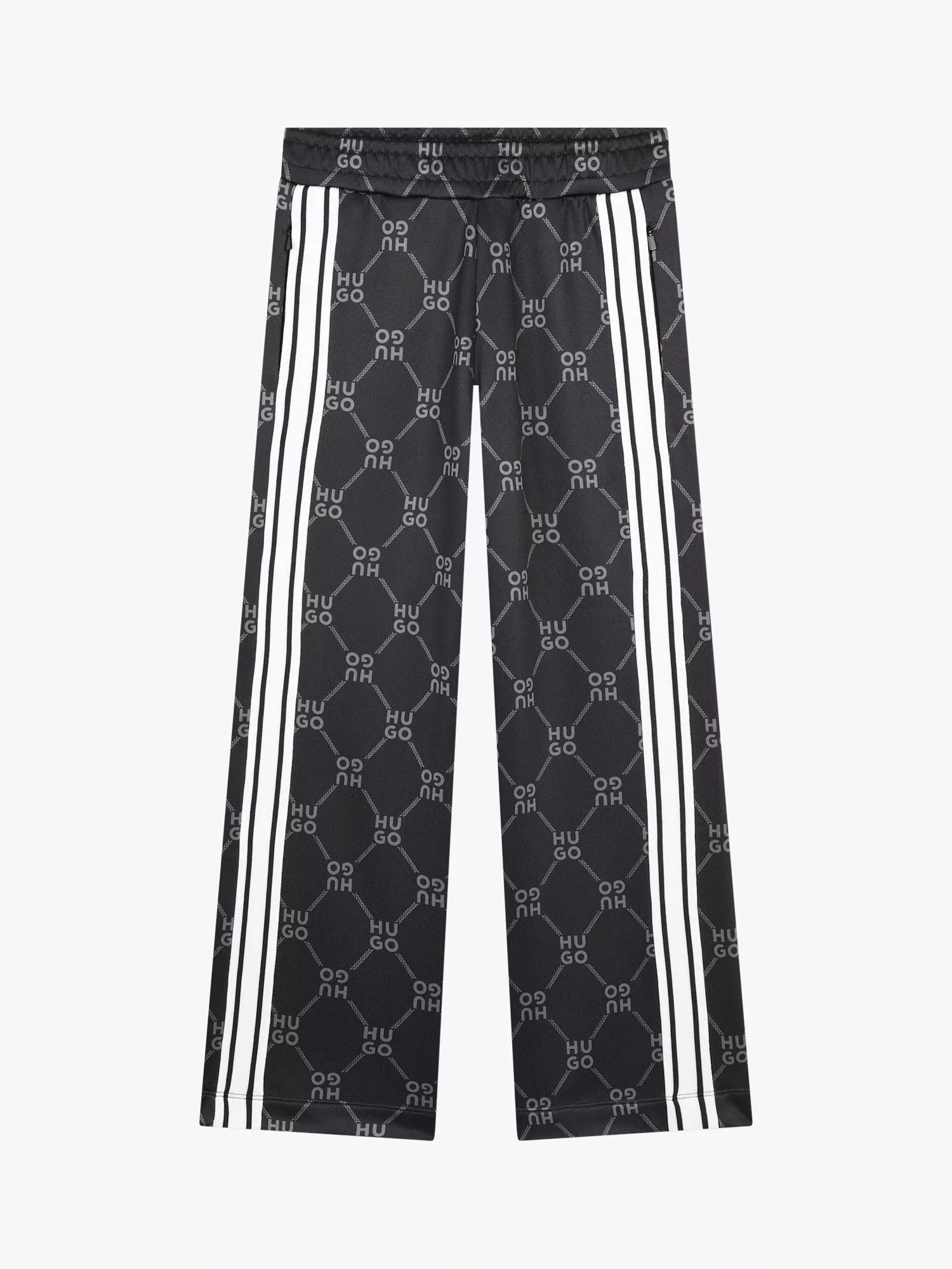 Sporty joggers, designed in a monogram allover print. Cut to a loose fit with a flared leg shape, comfy elasticated waistband, side pockets and stripe detail down the leg.