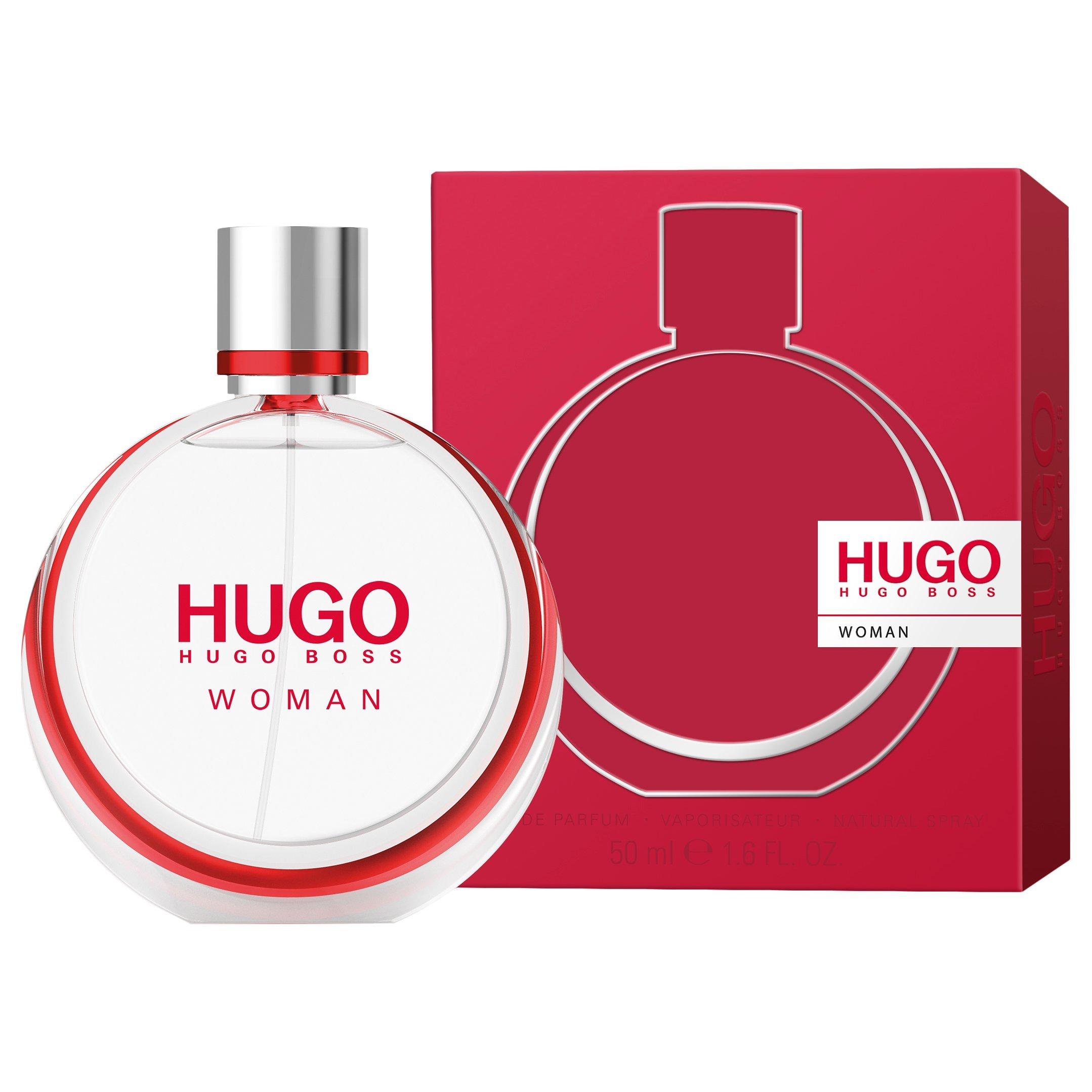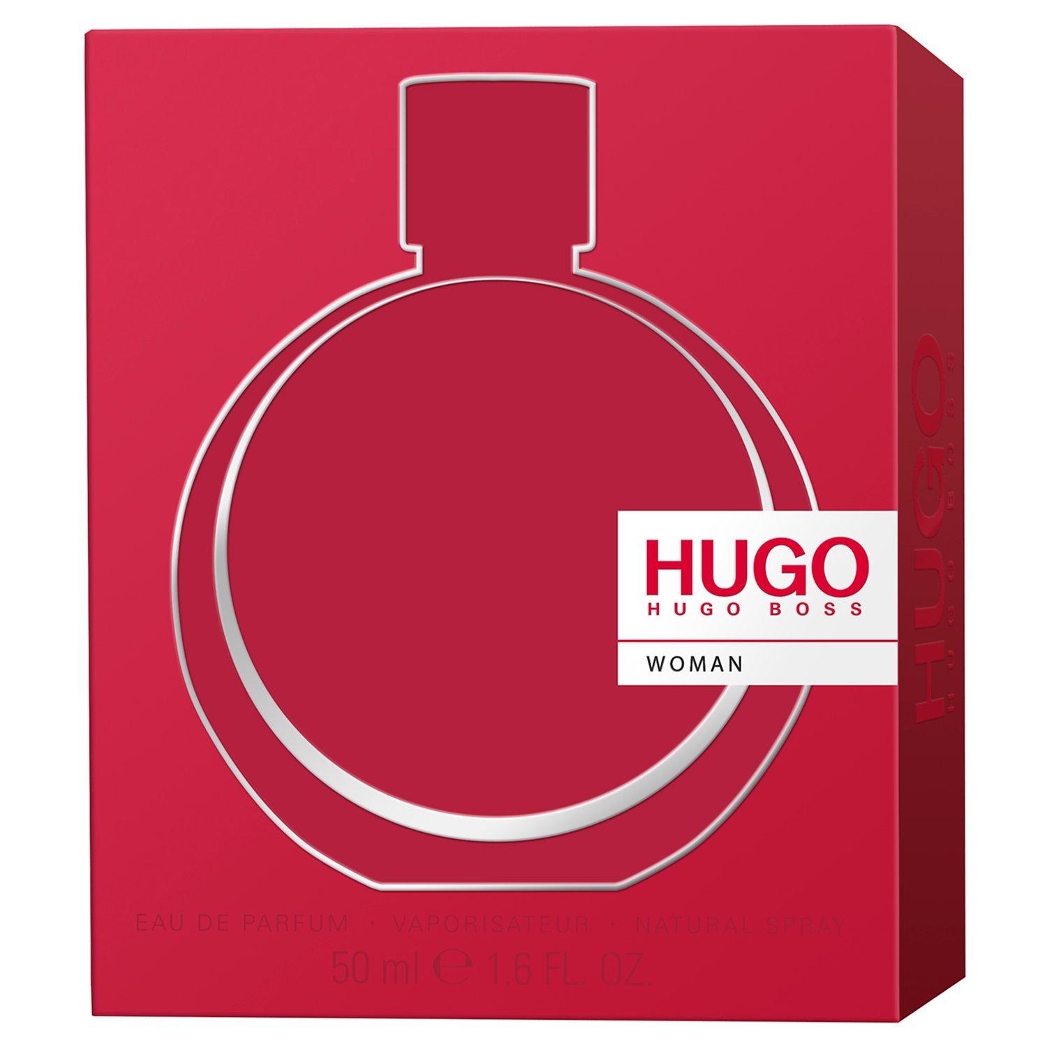 - HUGO Woman is a fruity floral fragrance with an unconventional boyish twist. The scent is a contrast of feminine and unexpected masculine notes creating a contrast of tones and sensations. HUGO Woman is the scent for modern, stylish women who live life their way and follow the motto 'invent yourself'. Top Notes: Boysenberry, Mandarin Heart Notes: Jasmine sambac, Black plum, Iris, Black tea Base notes: Sandalwood, Cedarwood, Amber