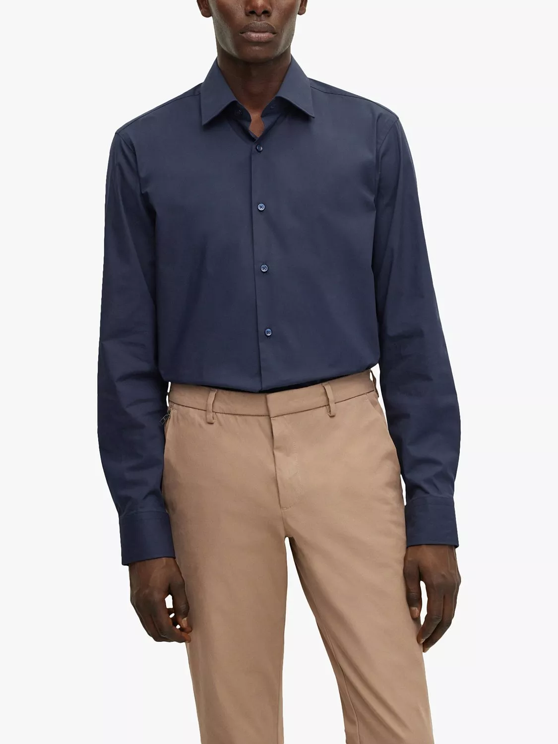 Offering all-day comfort and enduring style, this cotton-blend work shirt from HUGO BOSS is free-from-fuss and is cut to a fluid fit that transitions from daytime escapades to after-dark soirées.