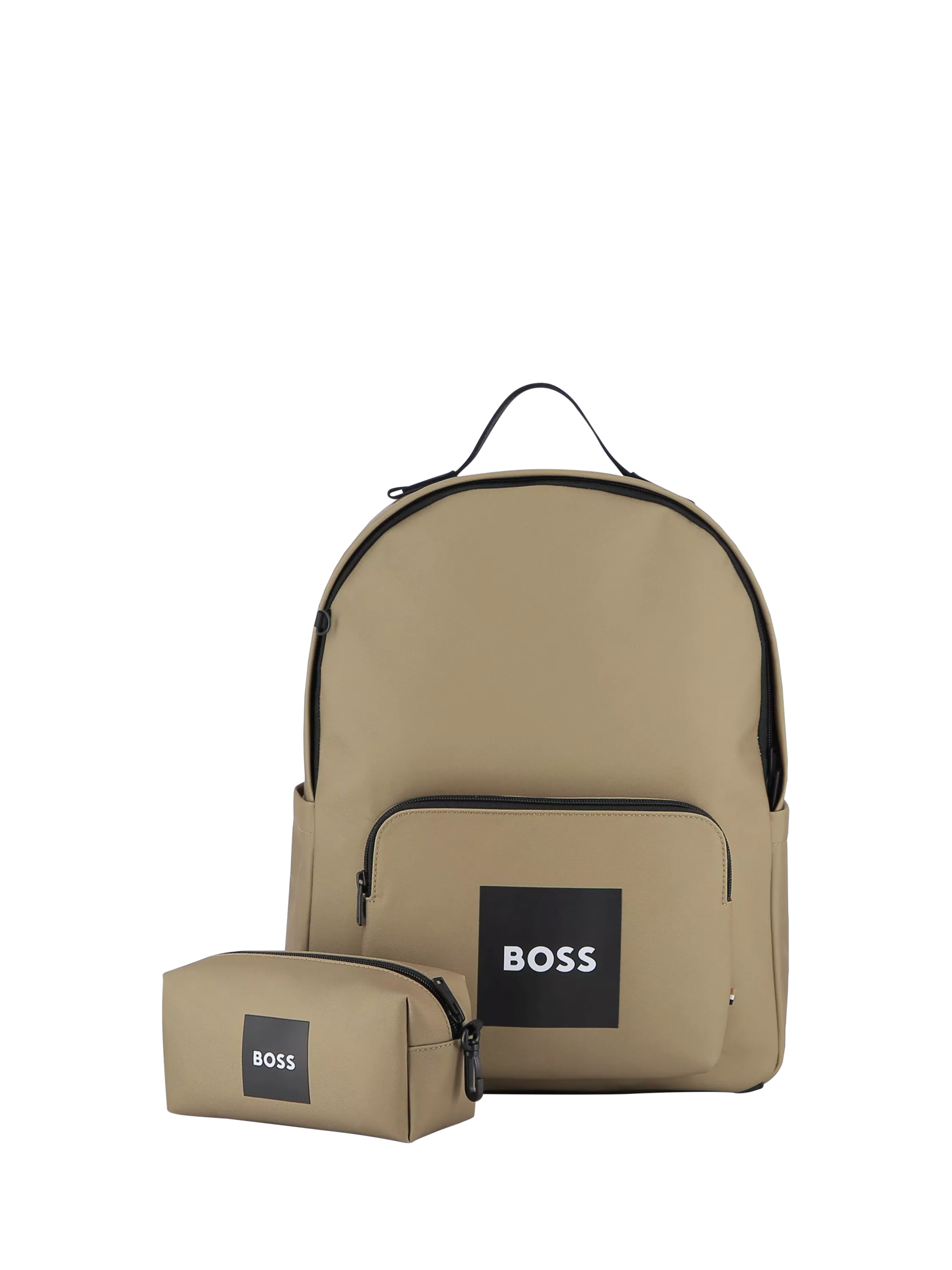 Backpack and pencil case set in polyester canvas featuring a zip closure, pocket sides and a padded back, and shoulder straps with mesh, for better comfort. Finished with BOSS label branding.