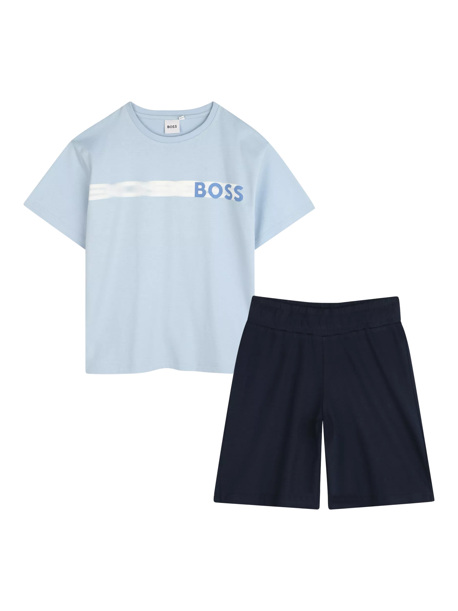 Shorts and t-shirt pyjama set. Short-sleeved t-shirt in 100% cotton jersey, fancy print on the front. 100% cotton jersey shorts, elasticated waist, woven logo label on the side.