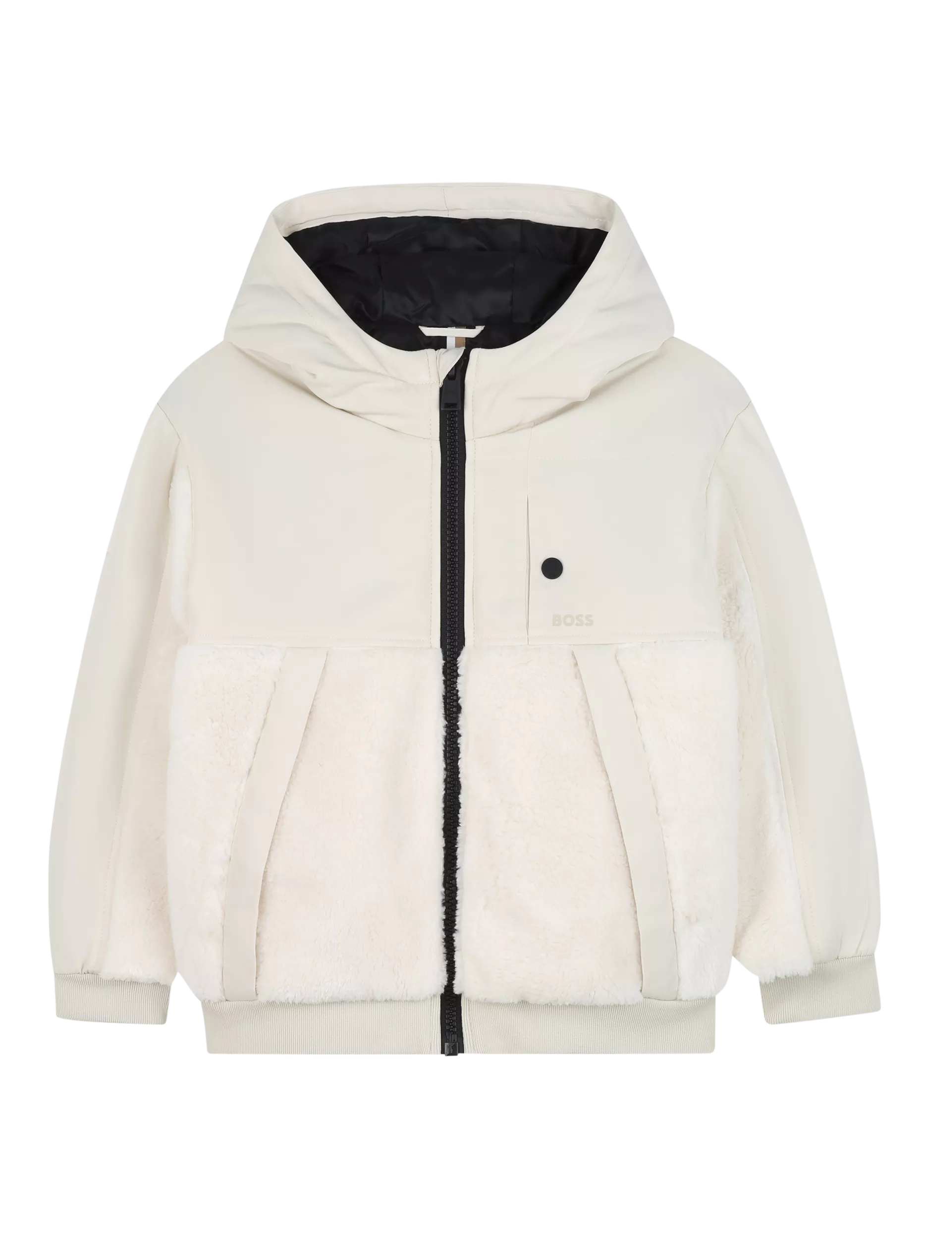 The BOSS quilted jacket wraps them in cushioned warmth and playful comfort, with clever detailing and a bold logo pattern. Perfect for active days out and about, it keeps life moving - no fuss, just feel-good protection.
