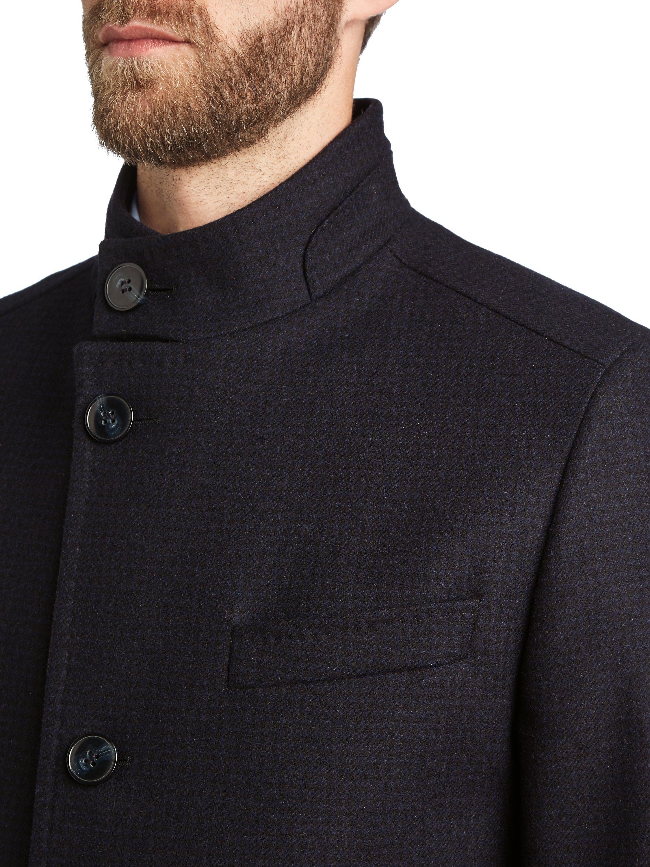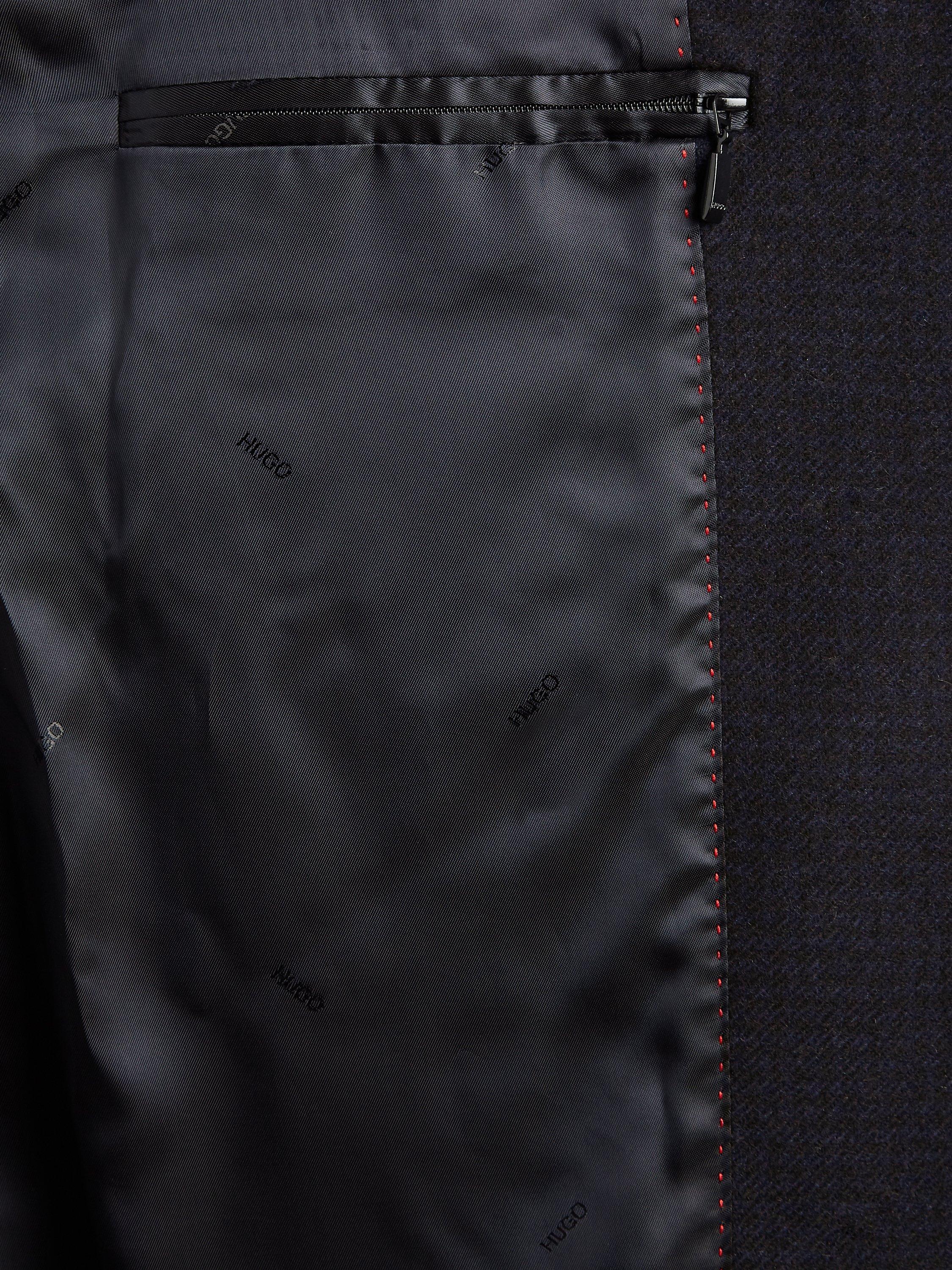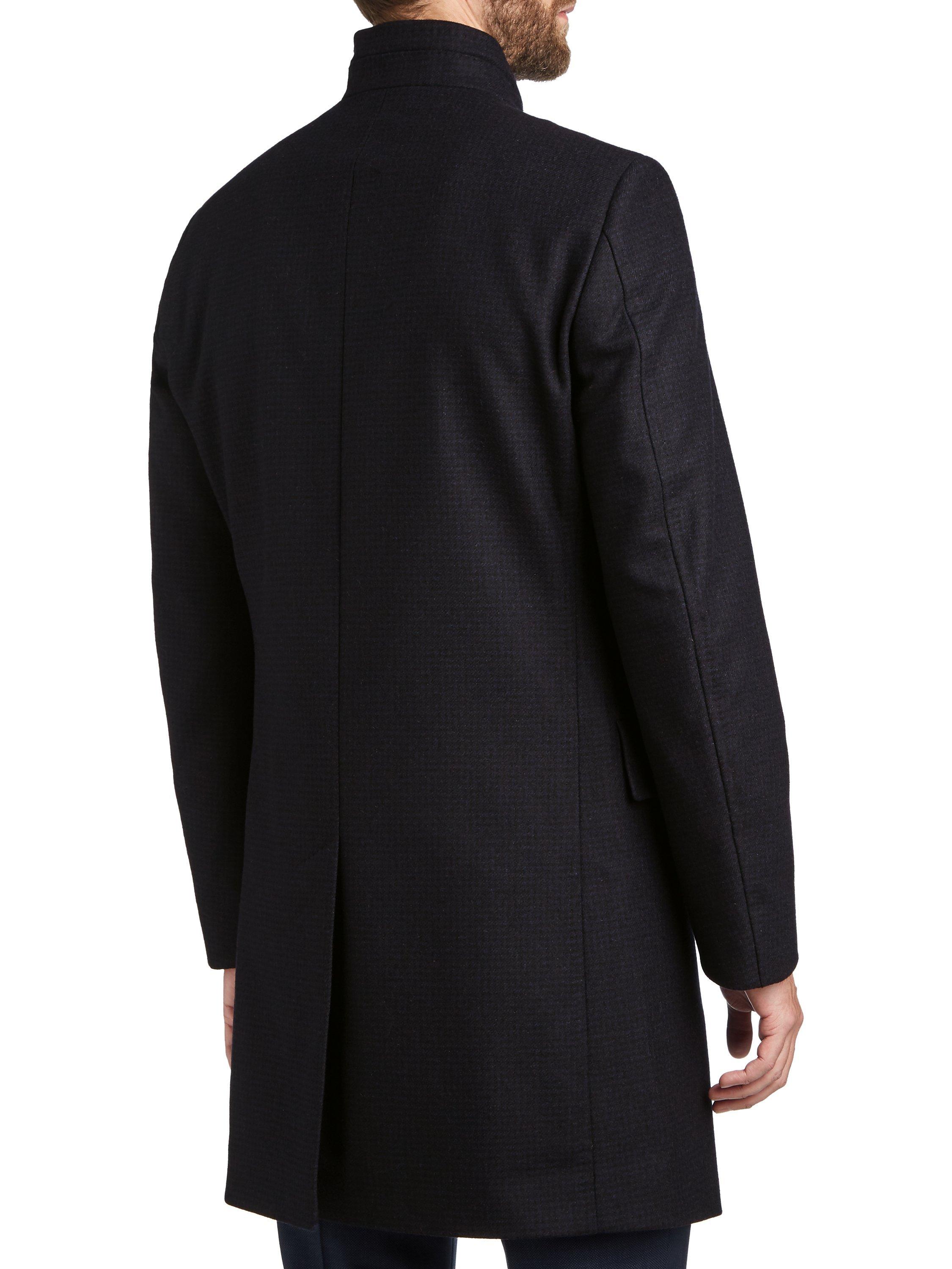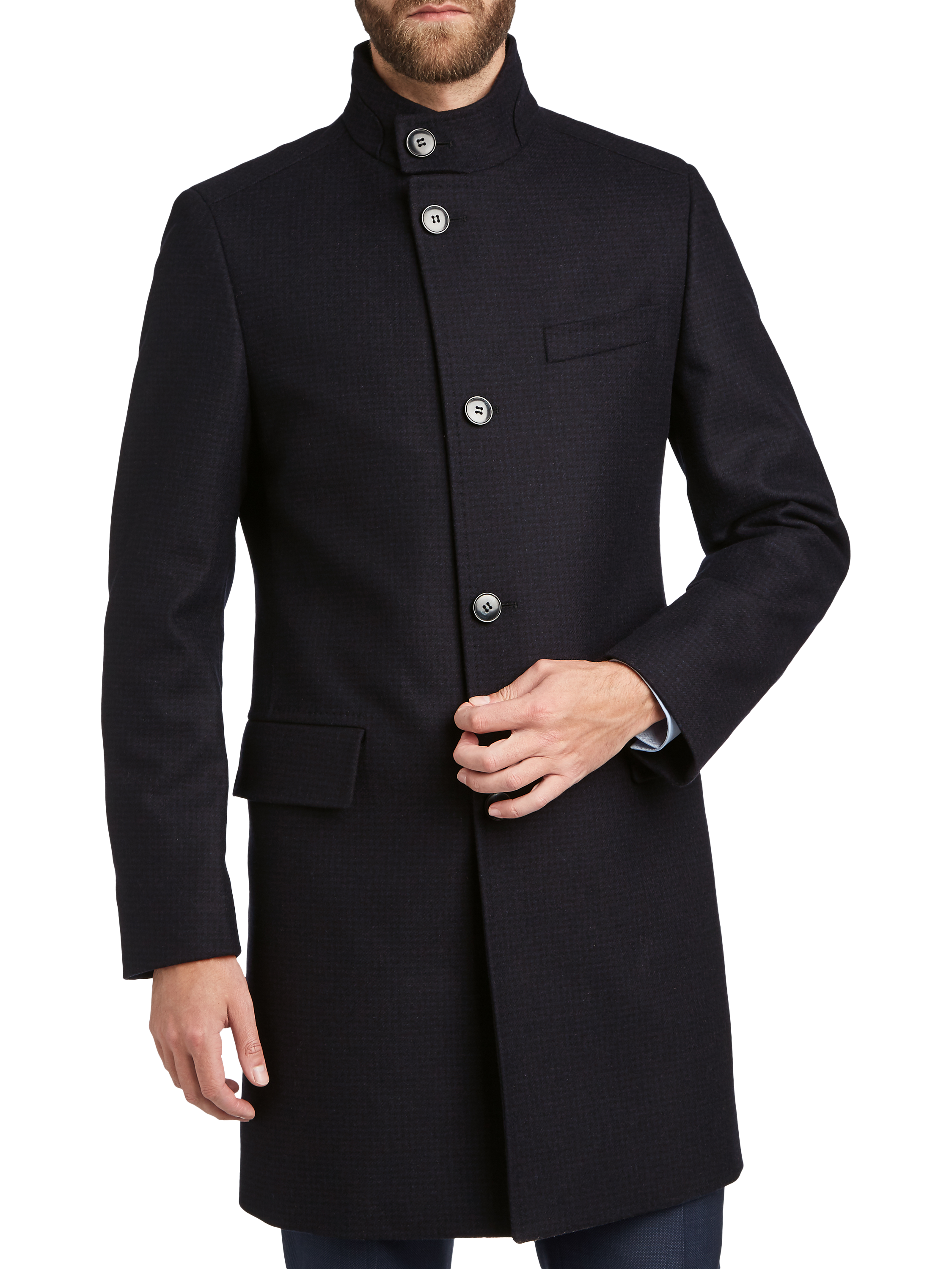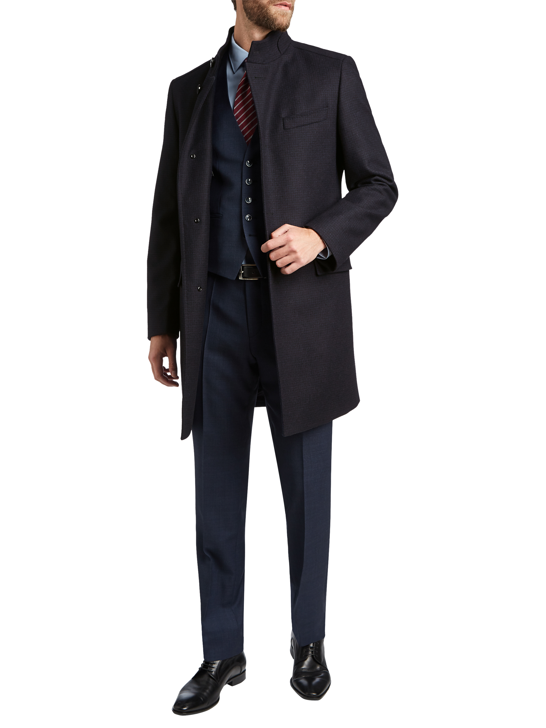 Stay debonair in this coat by Hugo Boss. With its regular length, stand collar, welt chest pockets, inside zip pocket and back vent, it's practical and classic, making it the ideal jacket for busy lifestyles.