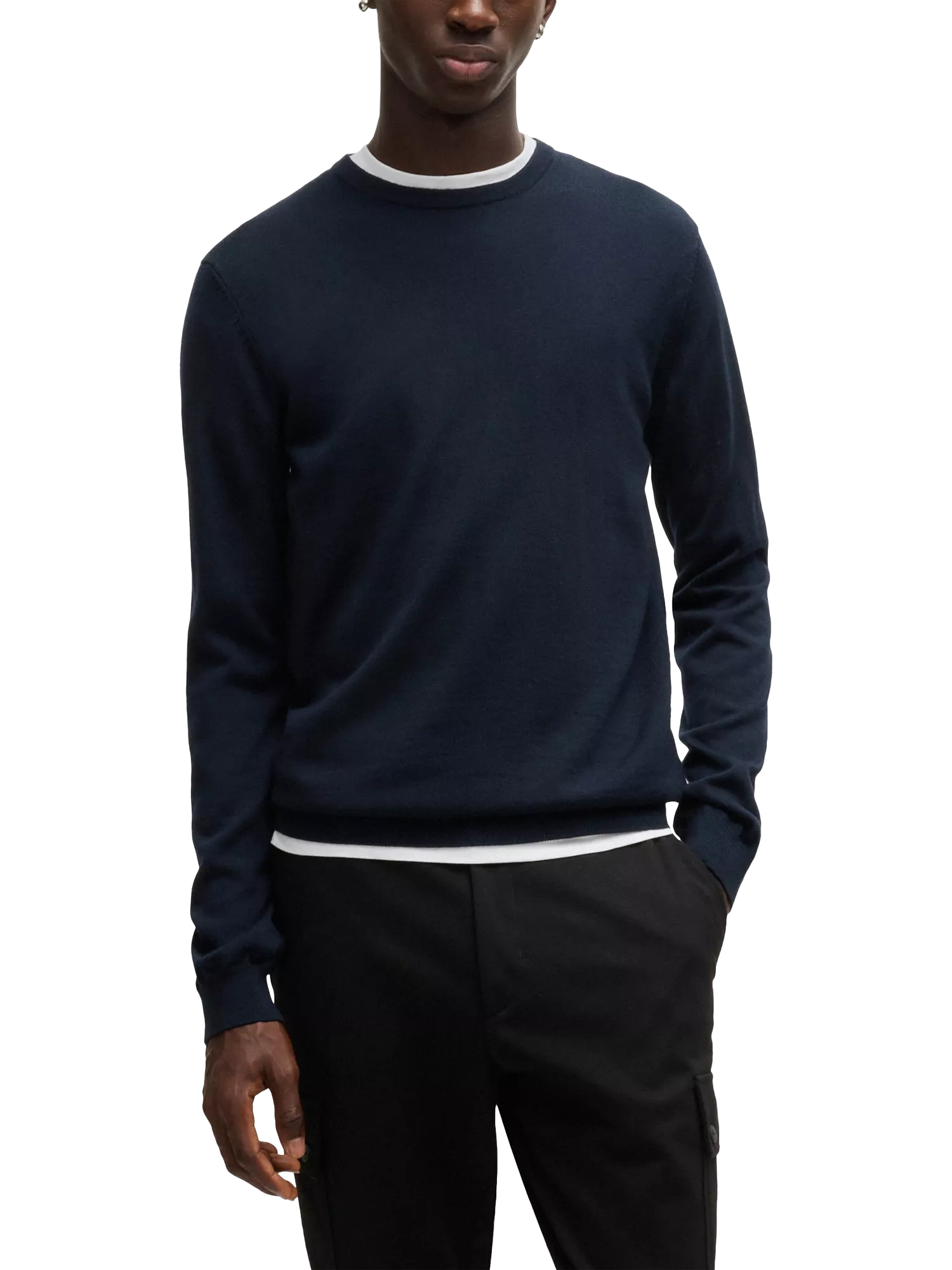 A firm foundation for cool-weather wardrobes, this fine wool knit from HUGO keeps you comfortable from morning meetings to evening plans.