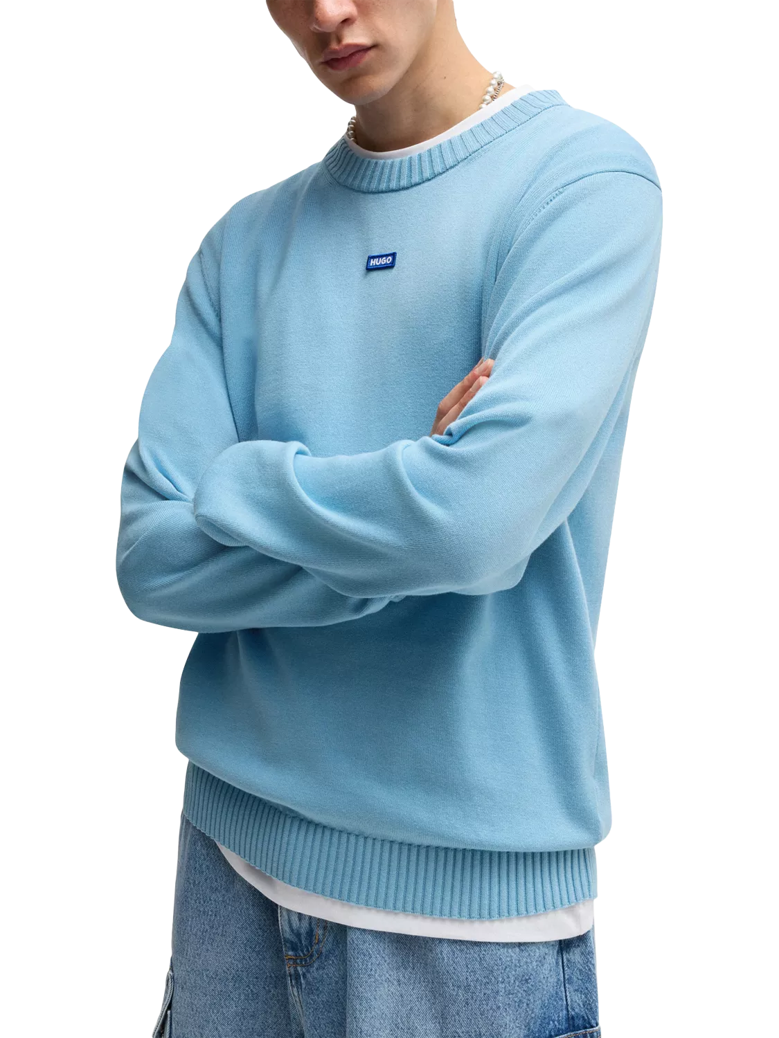 HUGO BOSSHUGO Cotton Crew Neck Jumper, Light/Pastel Blue