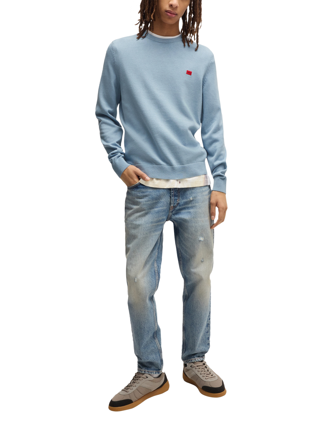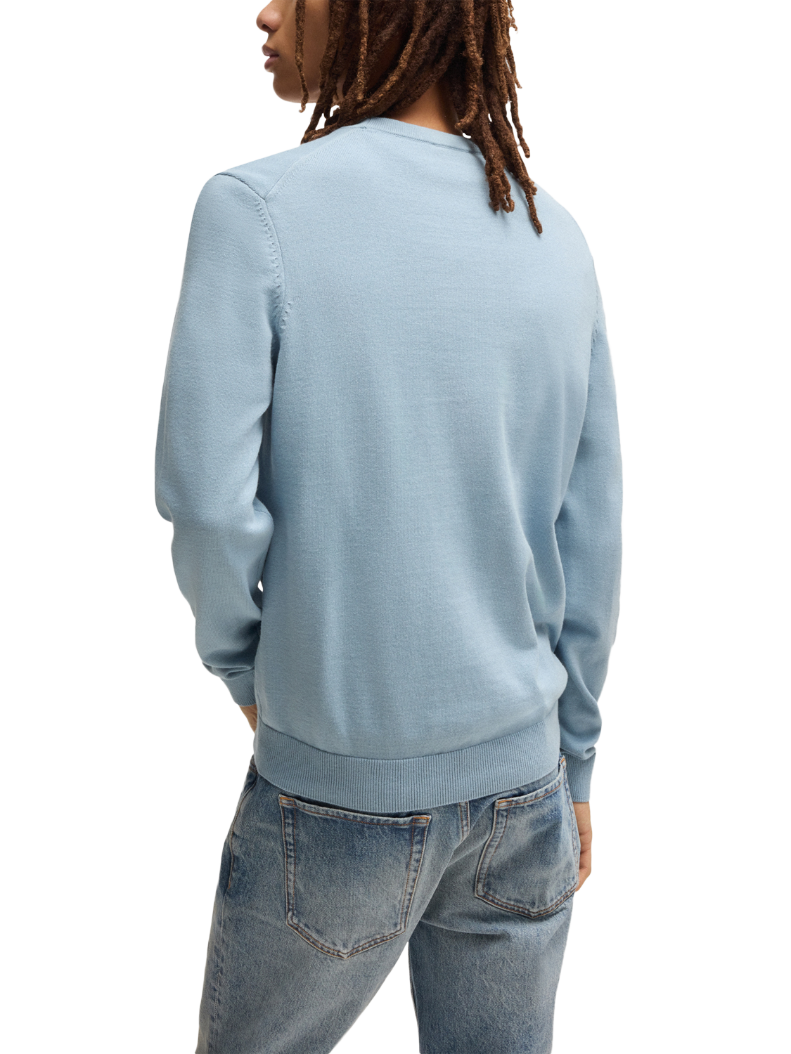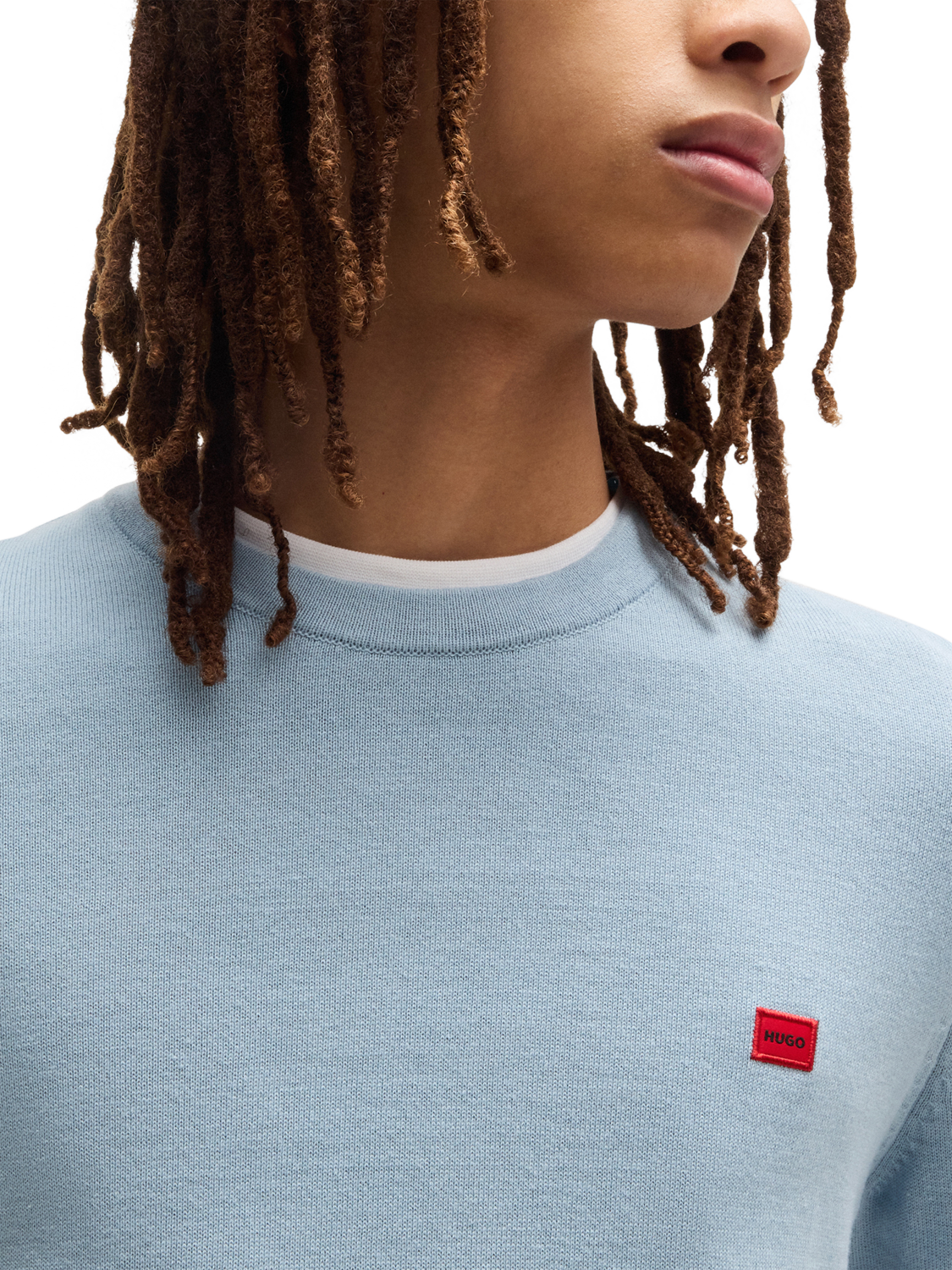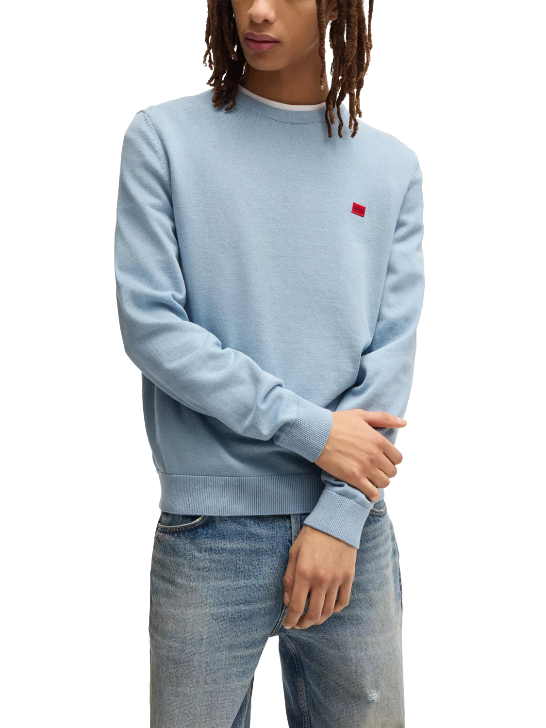 HUGO BOSSHUGO Cotton Crew Neck Jumper, Mid Blue