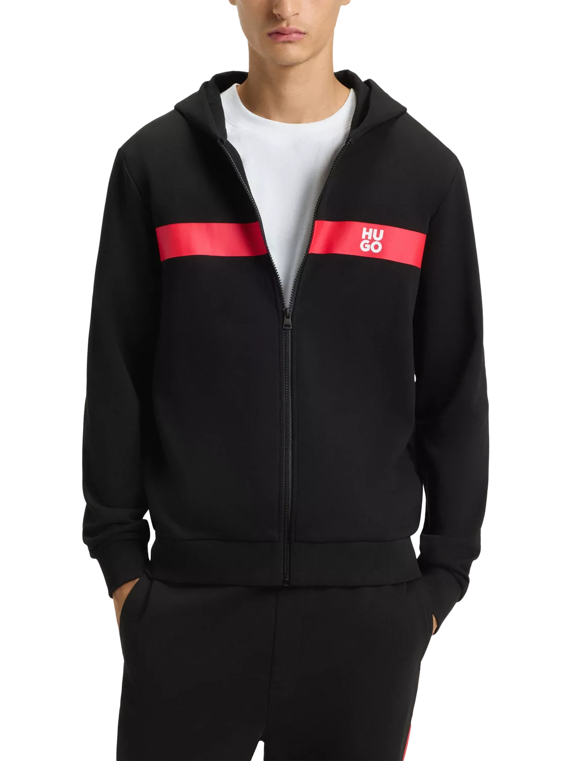 HUGO hoodie. Its regular fit and soft cotton bring comfort while the bold logo tape detail offers a clever twist.