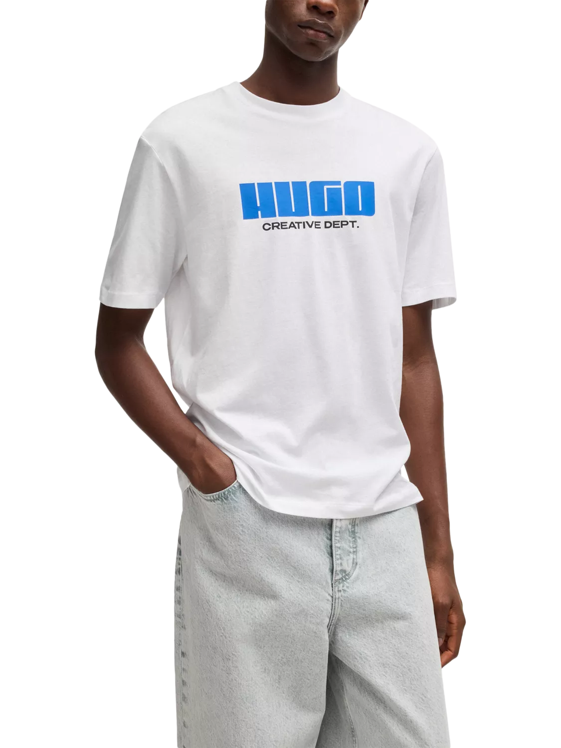 Enhance your wardrobe essentials with this cotton crew neck t-shirt by HUGO. Sporting the brand's unmistakable logo, try pairing with joggers and trainers for an athleisure vibe.