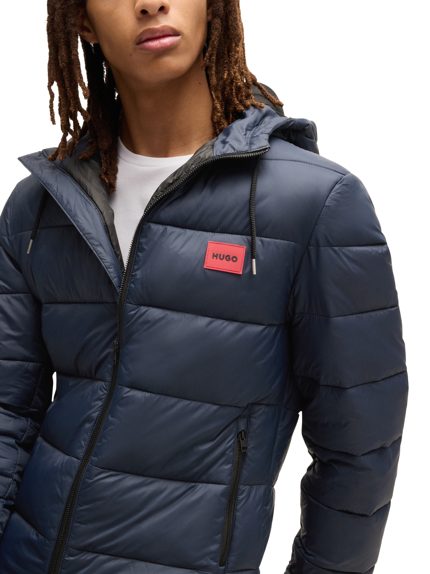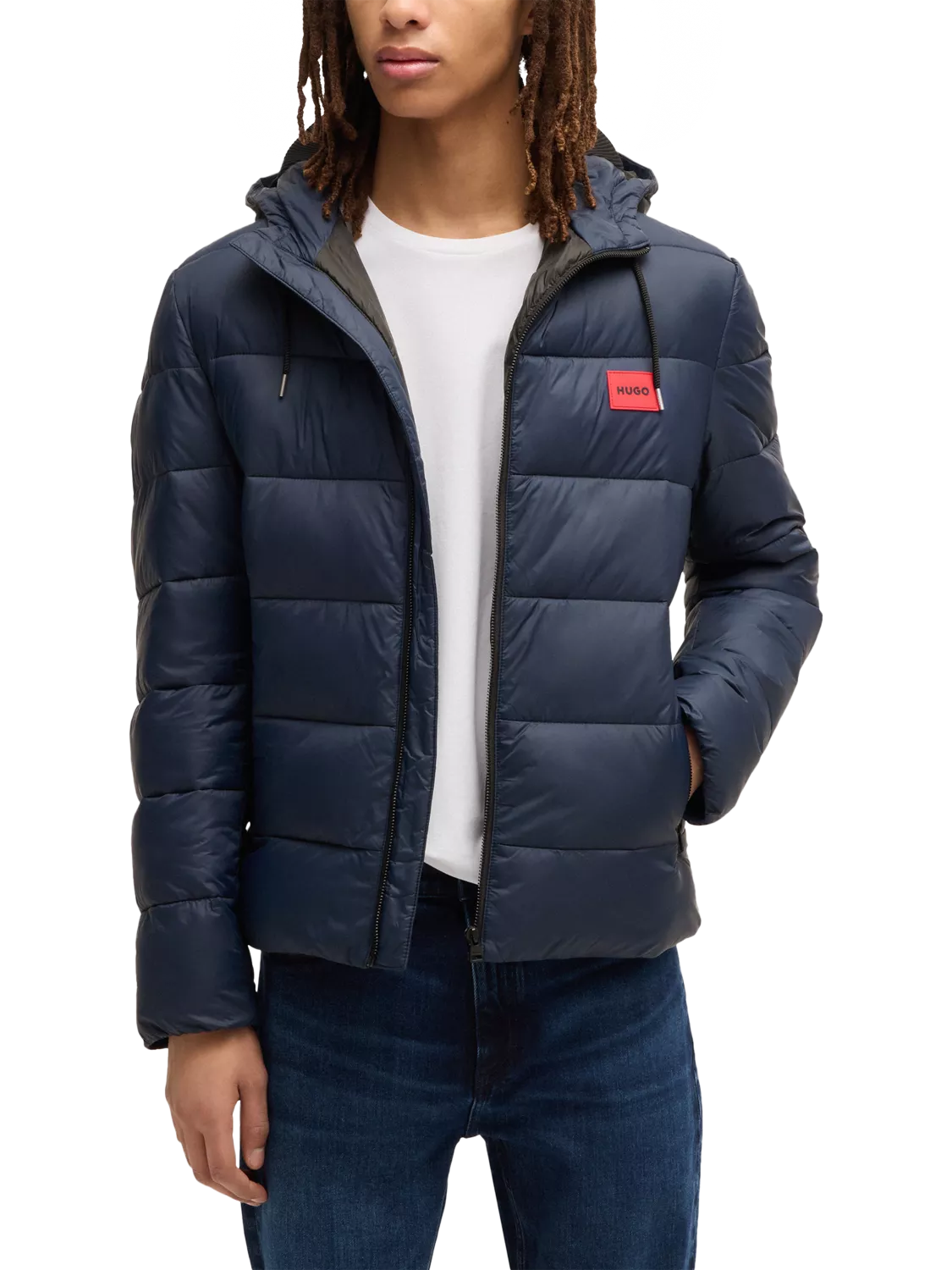 With its classic padded shape and reliable protection against the cold, reach for this quilted jacket from HUGO. Featuring a cosy hood with a drawstring, side pockets and a zip front, it's finished with a contrast branded patch to the chest.