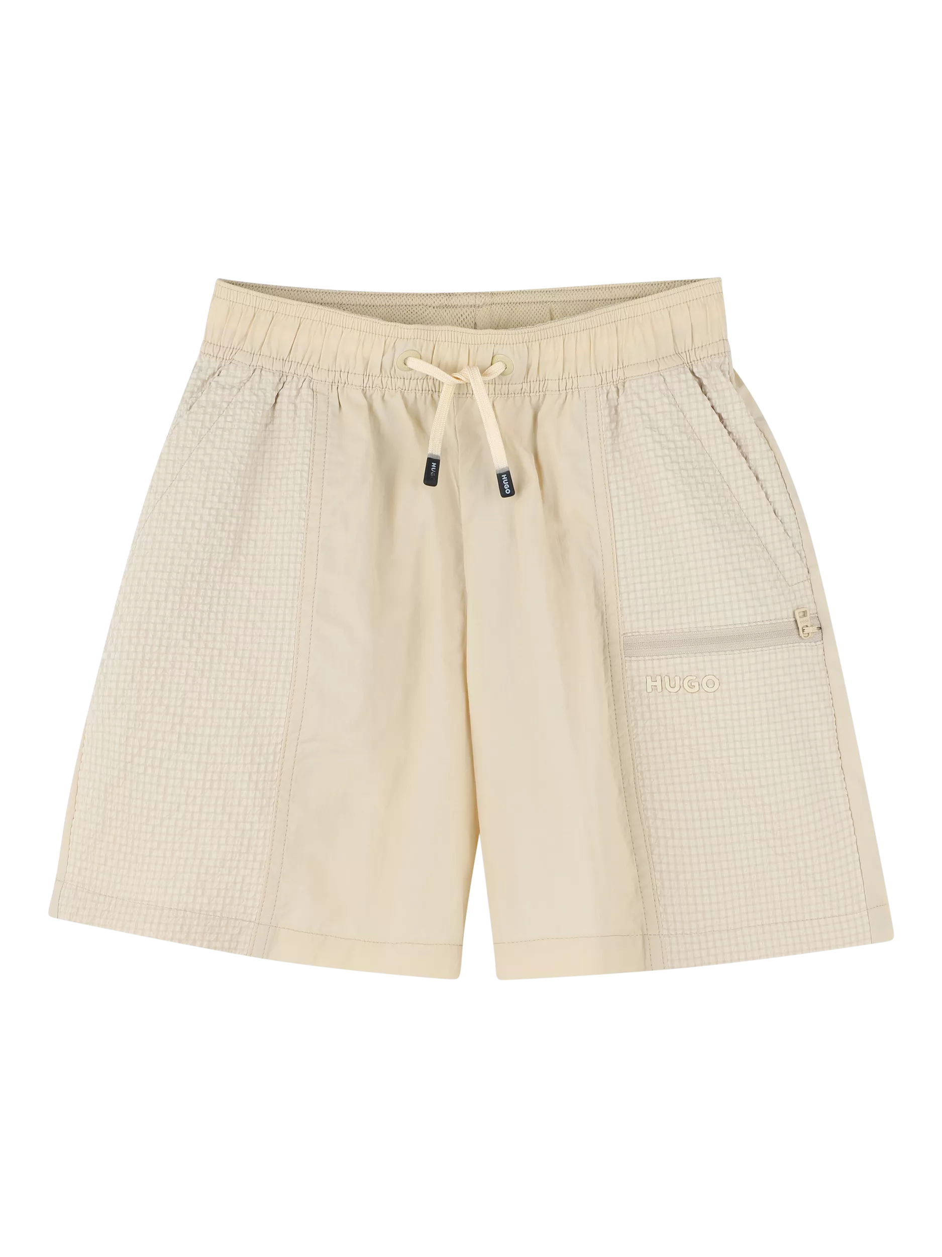 Made from crinkle fabric, these loose fit bermuda shorts by HUGO are designed with seersucker yokes, a mesh lining and a drawstring elasticated waist.