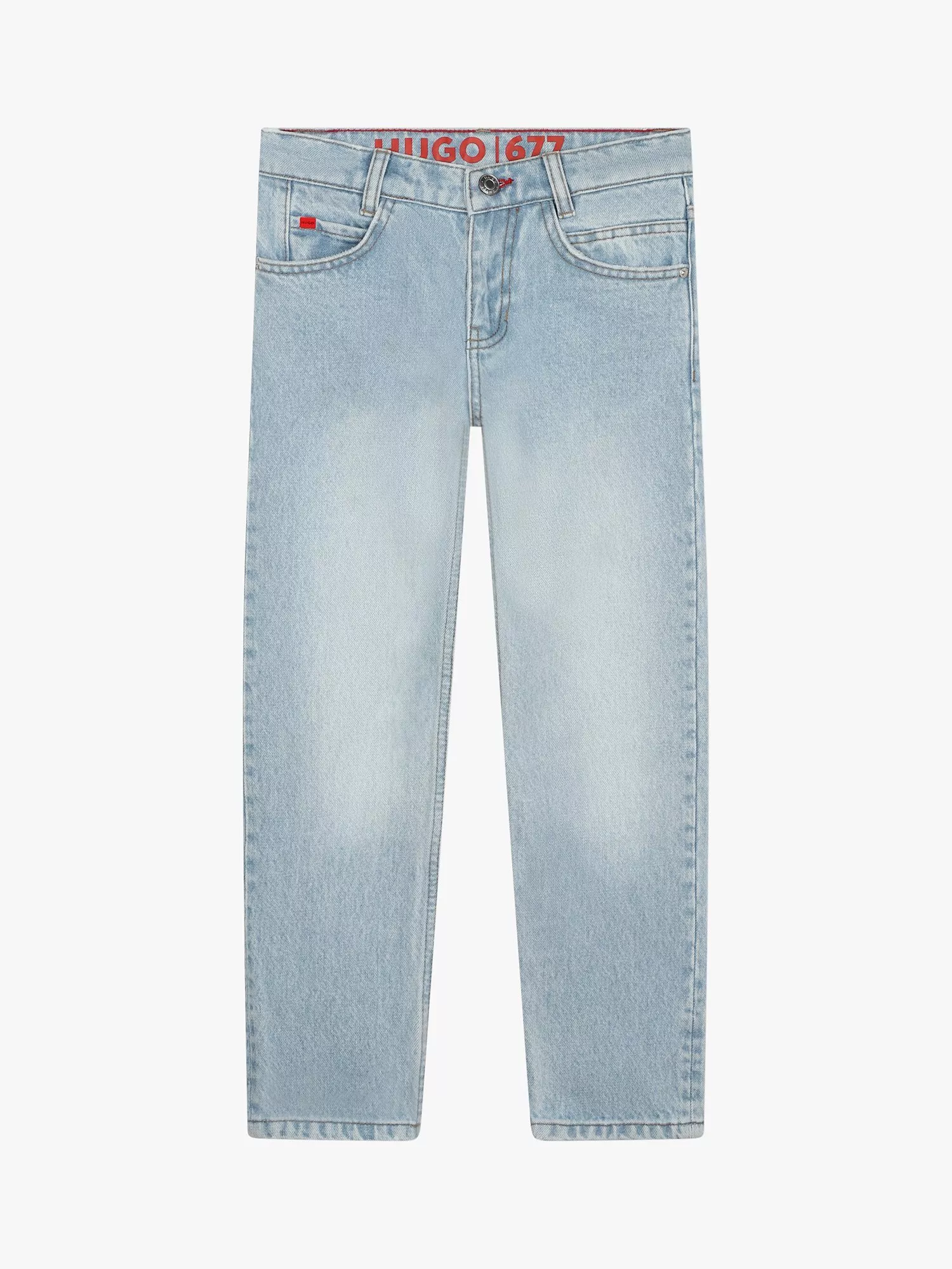These cotton blend denim jeans are made with classic five pocket styling, cut in a regular fit. Finished with HUGO branding.