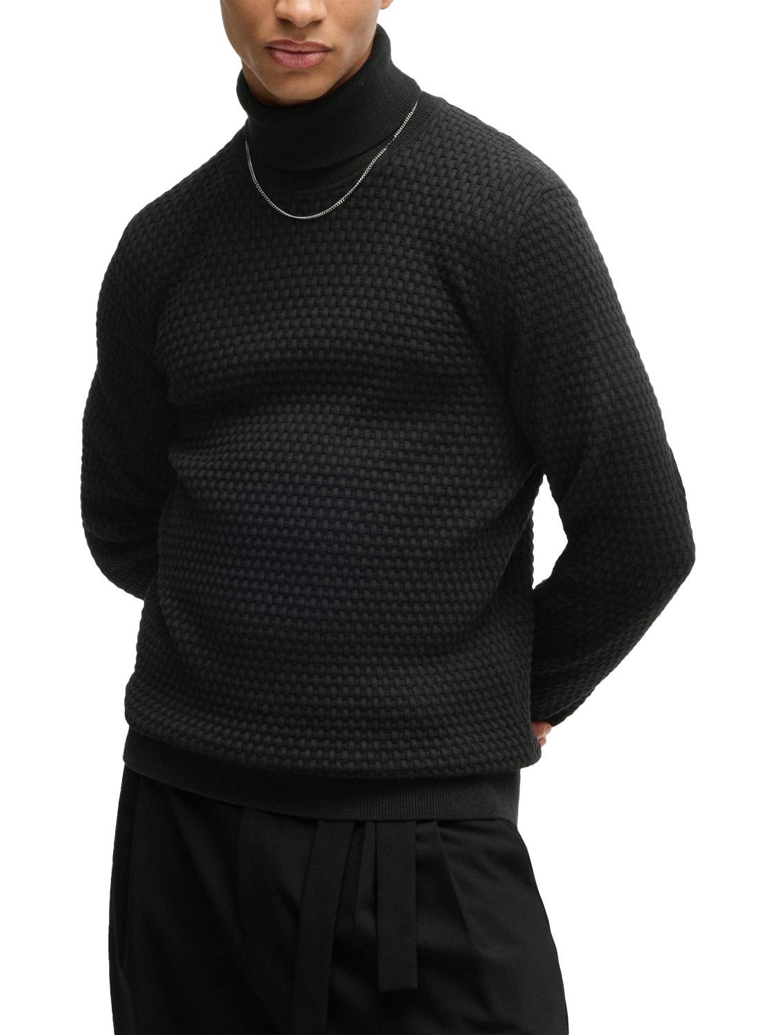 Roll neck jumper with a structured-knit pattern for modern appeal. Crafted in soft and breathable yarns in a regular fit.