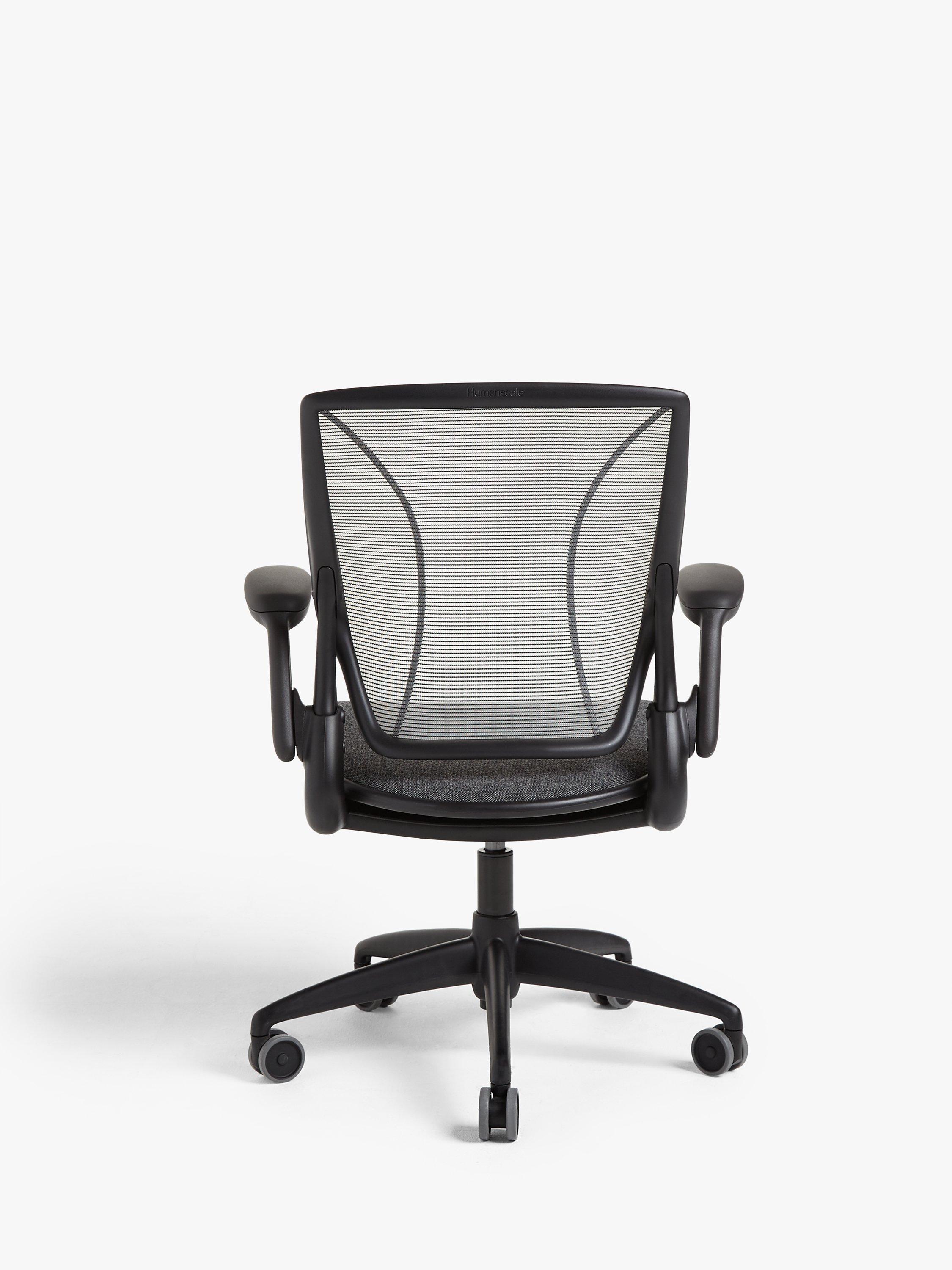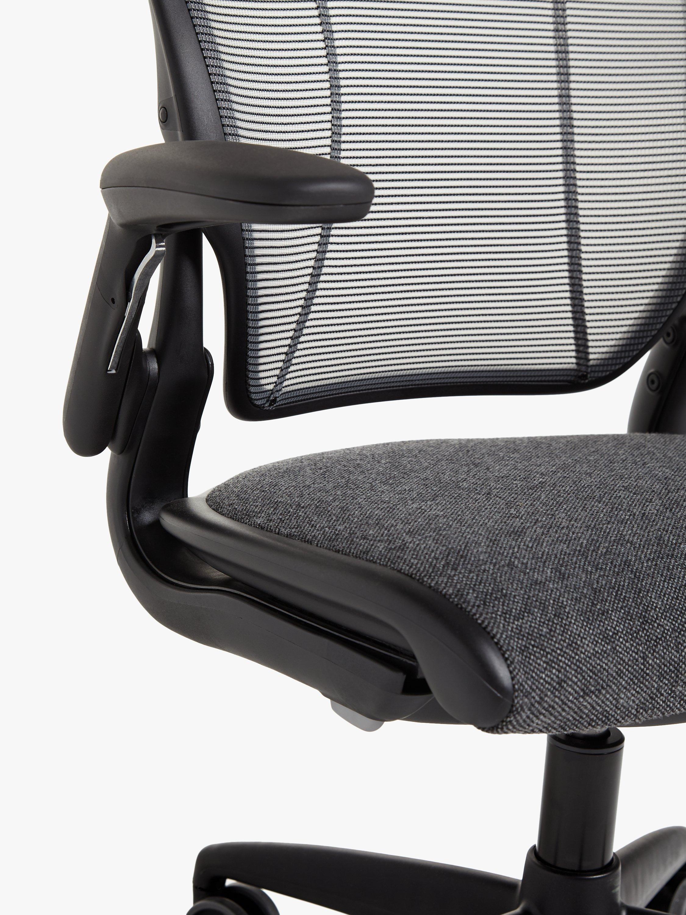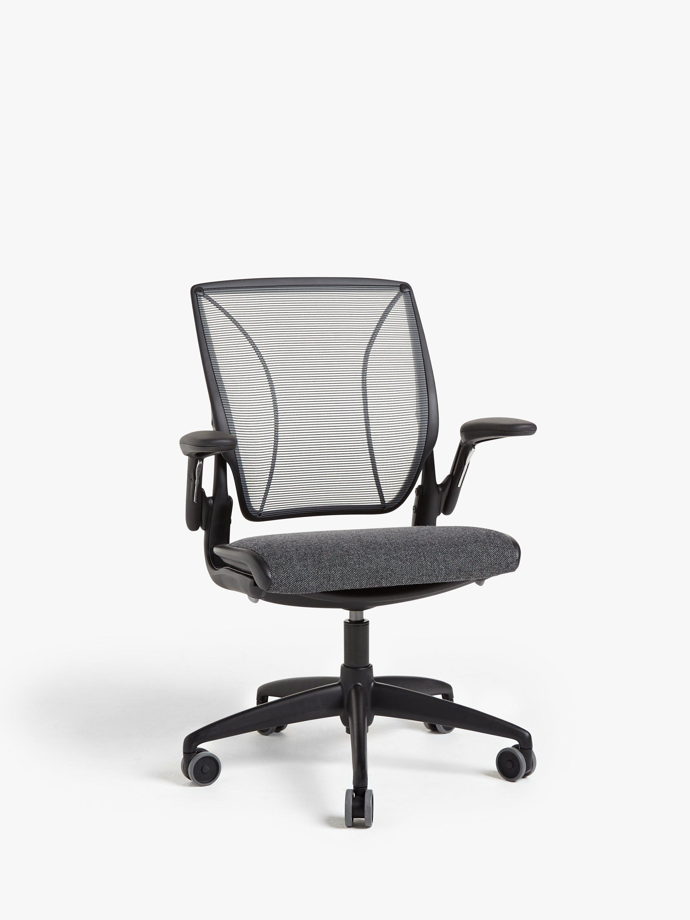 The Diffrient World Task office chair from Humanscale provides ergonomic support and comfort, in an innovative design that fuses functionality and style. Created by industrial designer Niels Diffrient, Camira is upholstered in two exclusive fabrics. This model is contract standard.