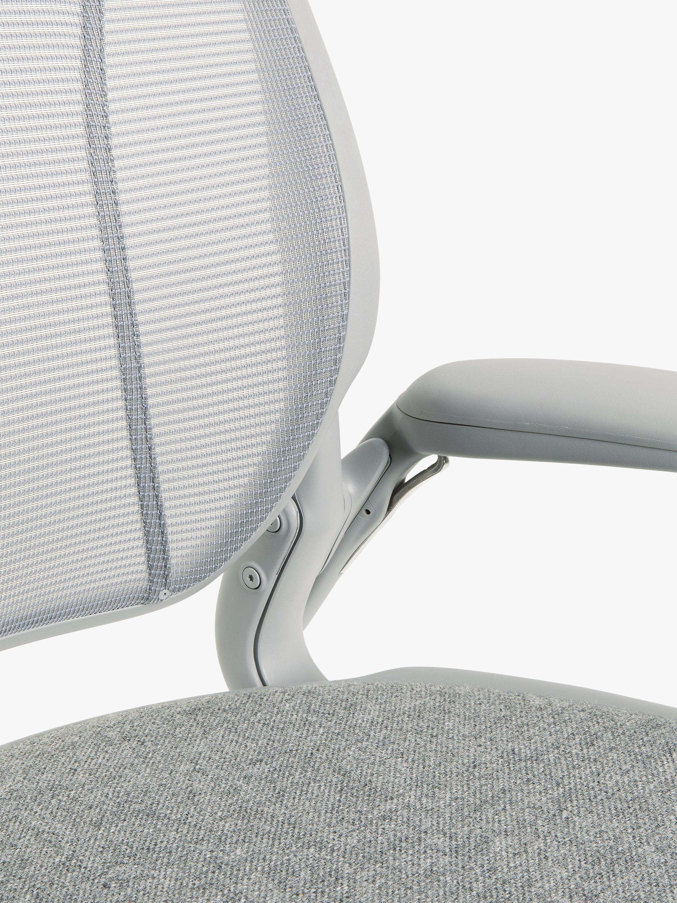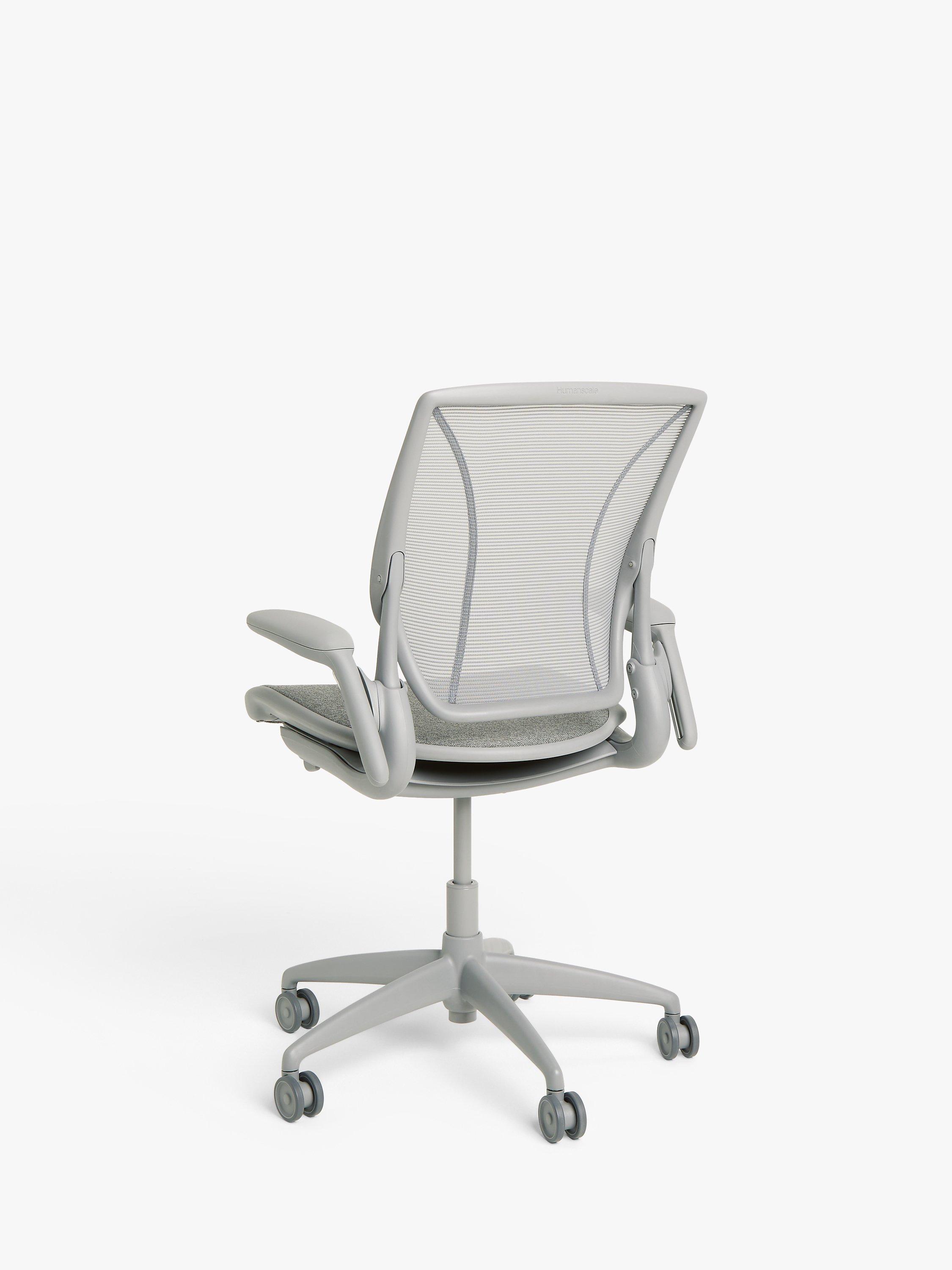 The Diffrient World Task office chair from Humanscale provides ergonomic support and comfort, in an innovative design that fuses functionality and style. Created by industrial designer Niels Diffrient, Camira is upholstered in two exclusive fabrics. This model is contract standard.