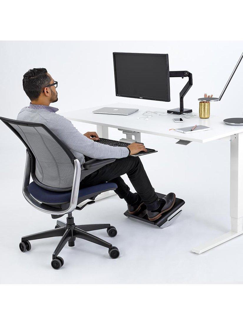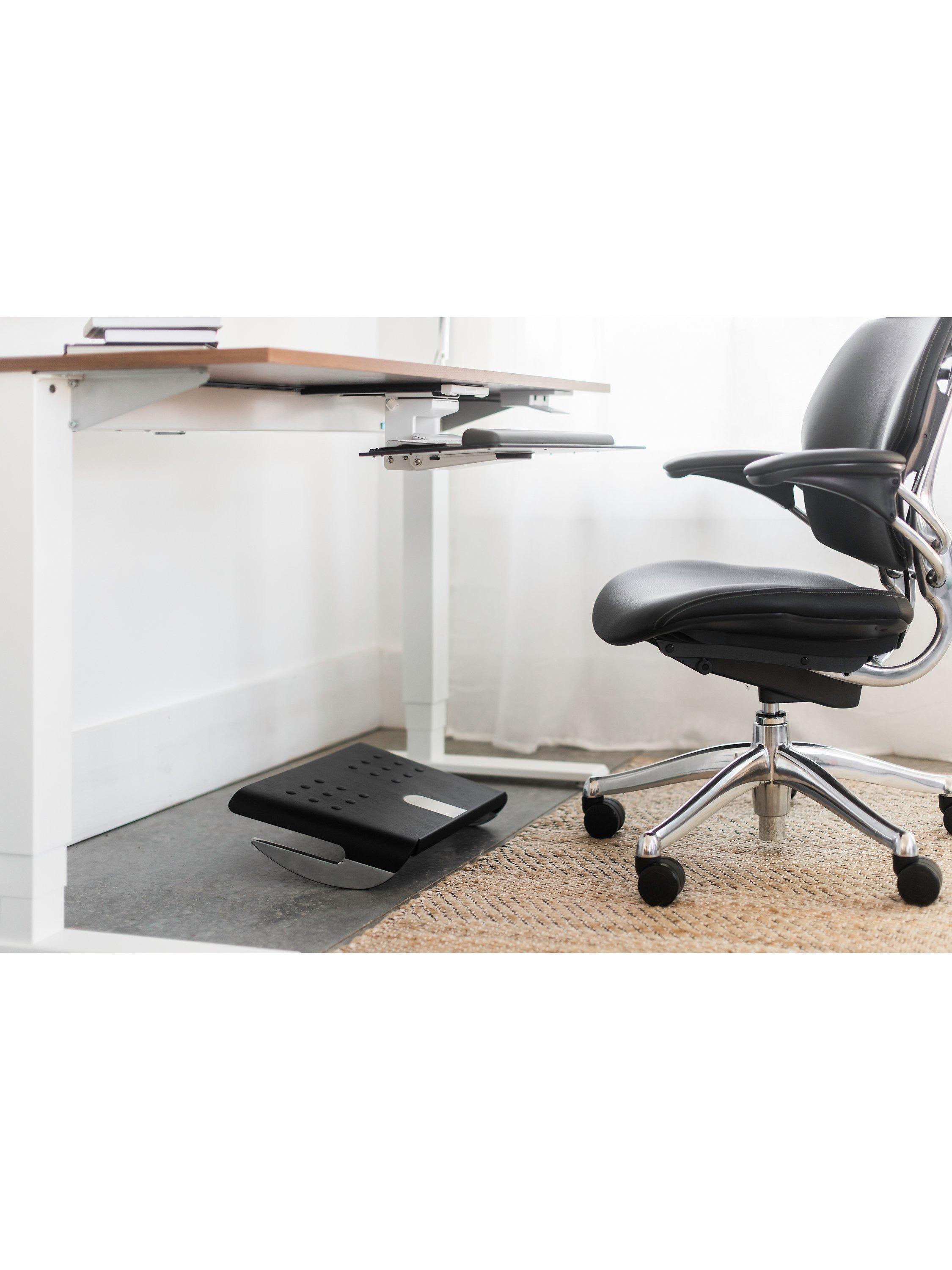 - Its gently curved design allows you to keep your feet firmly on the footrest and enjoy a gentle rock throughout the working day. This makes sitting for extended periods healthier and more comfortable, while aiding fatigue