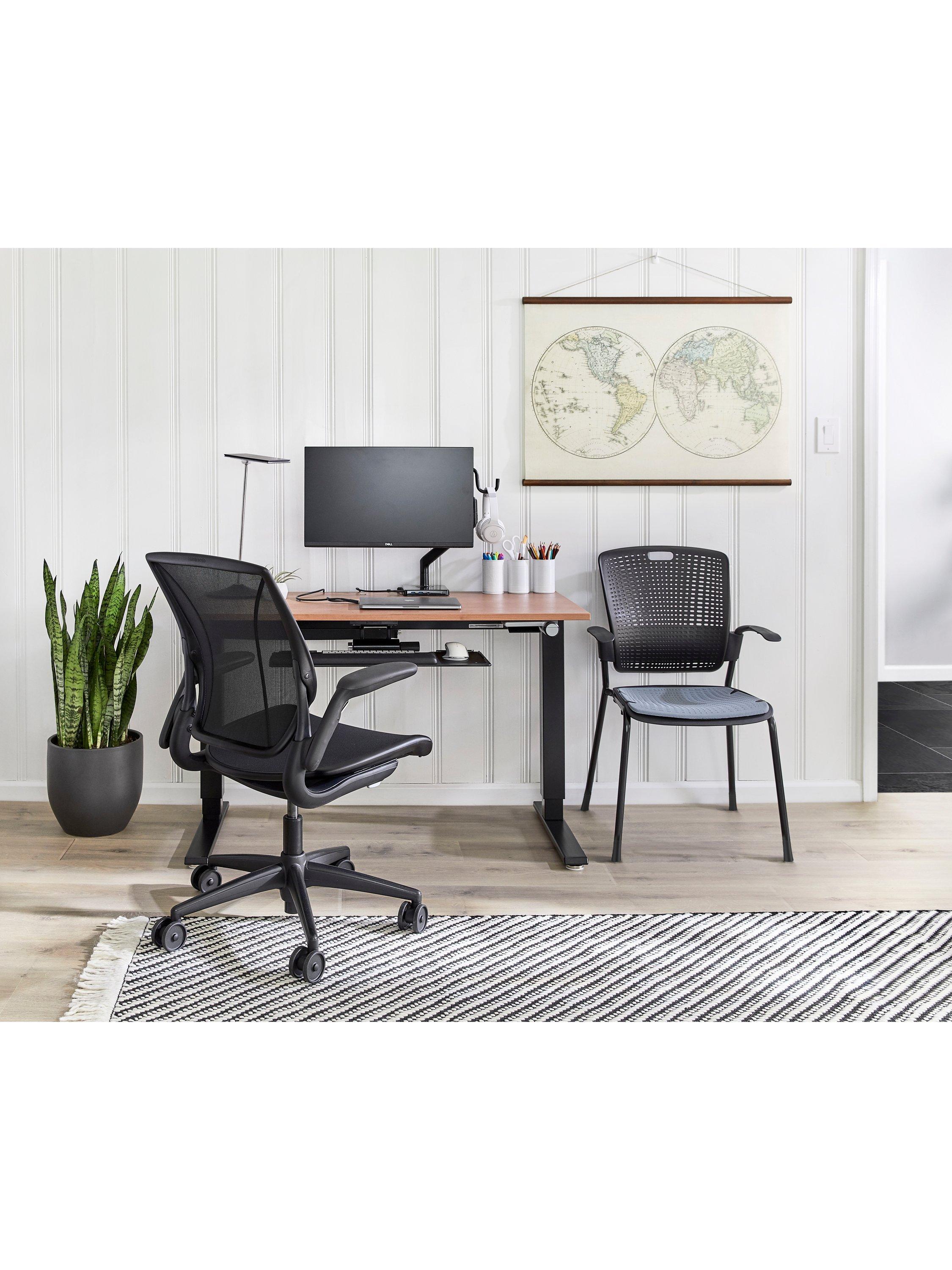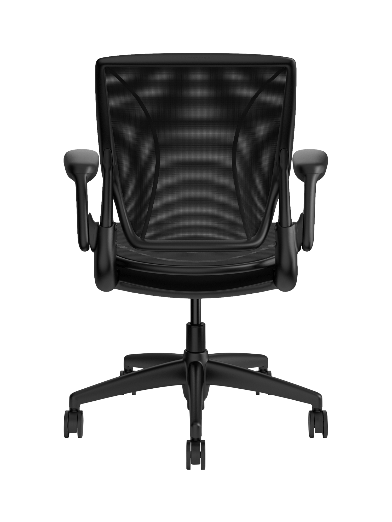 Like all Humanscale chairs, the World One's design eliminates the need for traditional mechanisms by using the laws of physics and the sitter's body weight to offer a perfect recline. World One features armrests that are attached to the back of the chair and move with the user, providing custom comfort throughout the workday. A high-value task chair with minimal parts, World One was built with longevity in mind to look as good in ten years as it does today.
