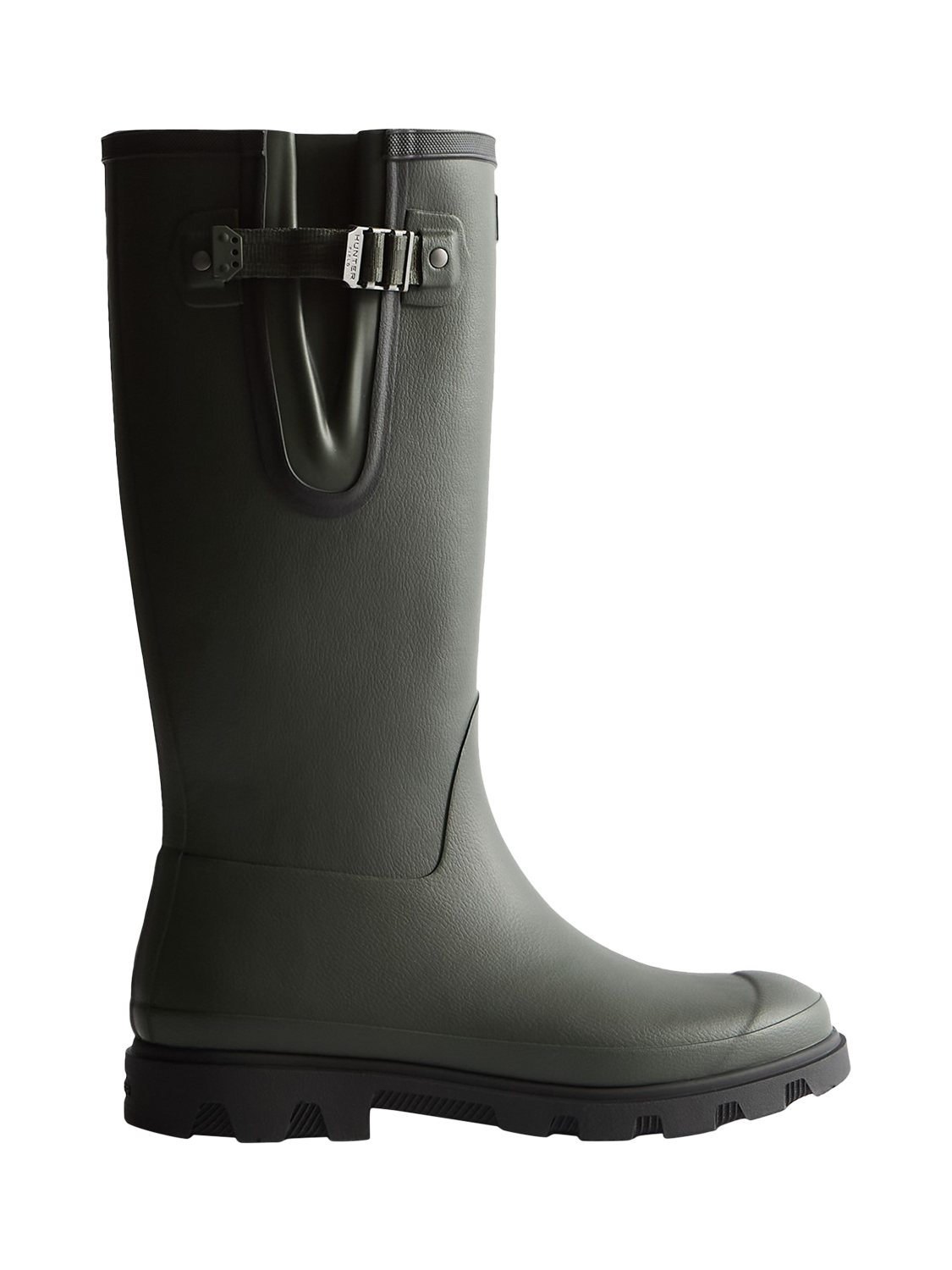 Made from 100% waterproof rubber, this style features a moulded lightweight outsole with advanced traction to support movement across slippery, uneven ground. A side gusset with adjustable webbing strap ensures a secure and comfortable fit, while the Balmoral buckle and heritage topbind nod to Hunter's agricultural heritage. Whether navigating muddy terrain or facing heavy downpours, this boot delivers all-day protection with a classic look.