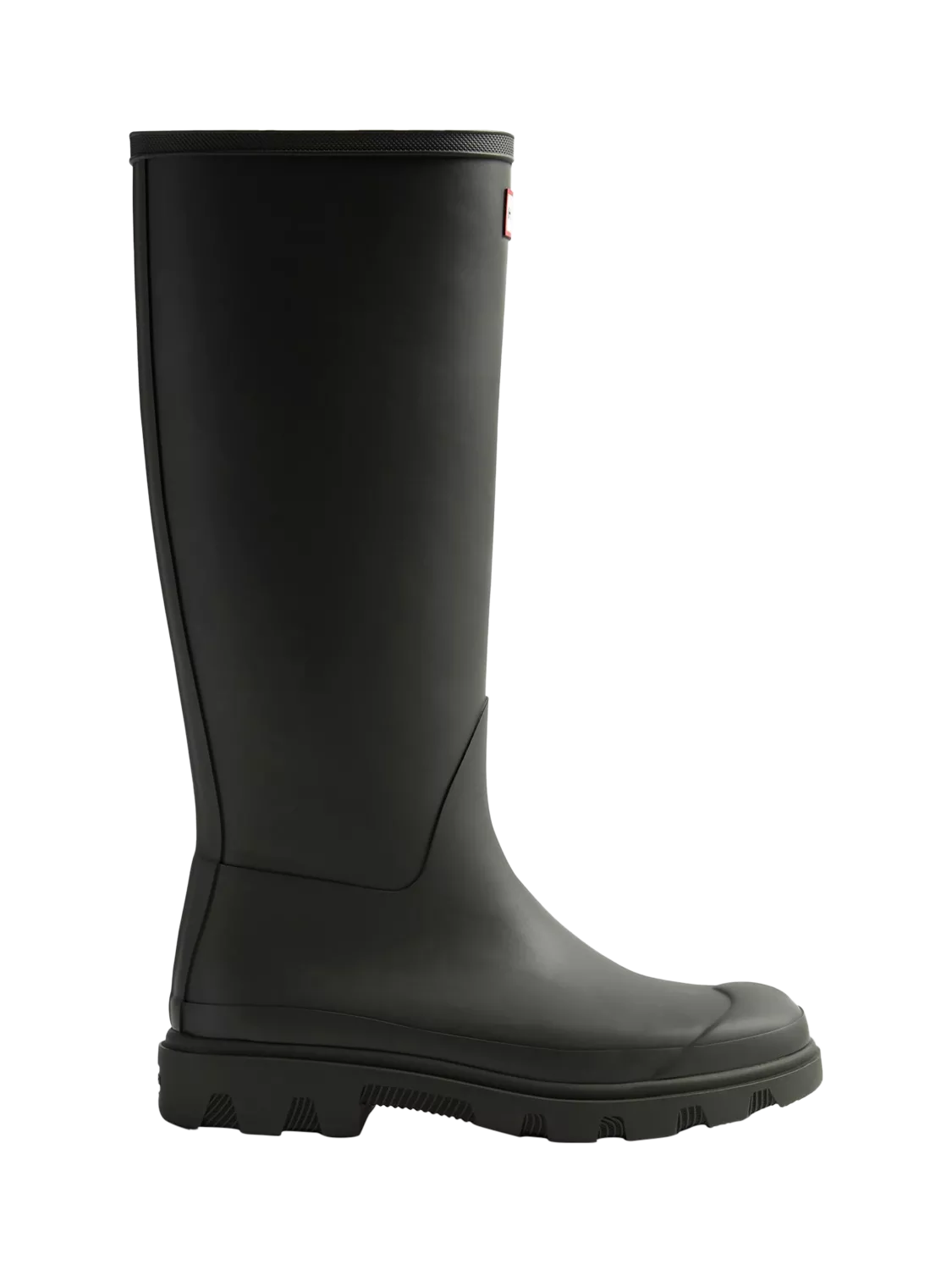 Introducing the newest addition to the Hunter family, the fully waterproof Women's Downpour Tall Boot. Sleek upper design. Lightweight moulded outsole. Handcrafted and finished with a heritage topbind.