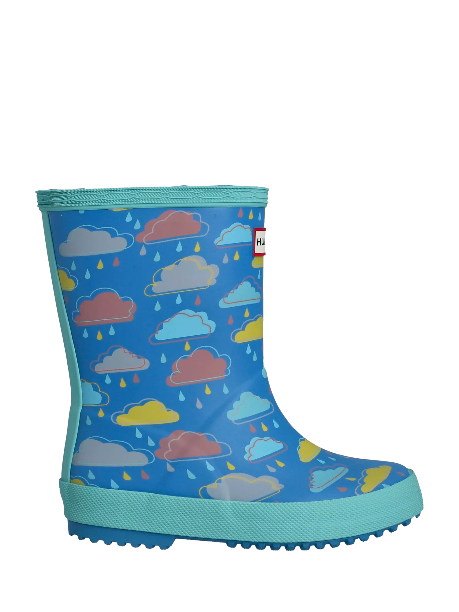 HunterKids' First Classic Rain Cloud Wellington Boots, Blue/Multi