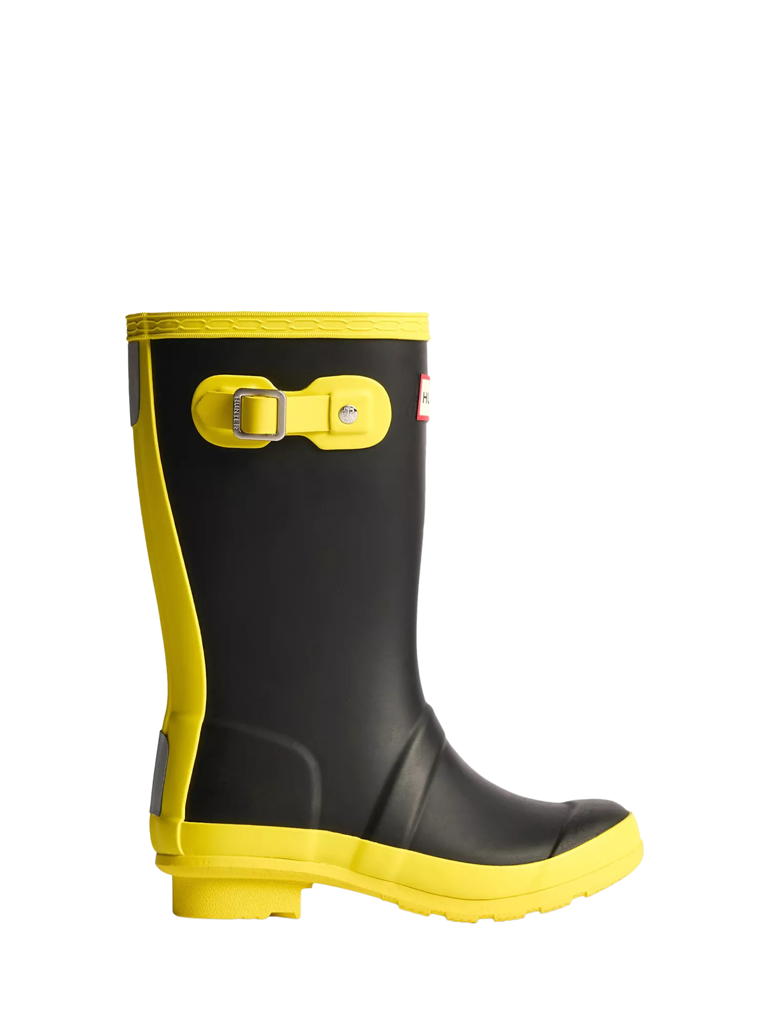 A mini version of the iconic Original Tall Boot, the Original Kids Wellington is a dream for junior explorers. This classic Hunter black waterproof boot is handcrafted from natural rubber. Designed for adventures, these specialised kids wellies are highly resistant to wear and abrasion with a polyester lining for comfort. Reflective patches and the Hunter Original tread offer added safety so you can be confident letting them take on the elements whatever the weather.