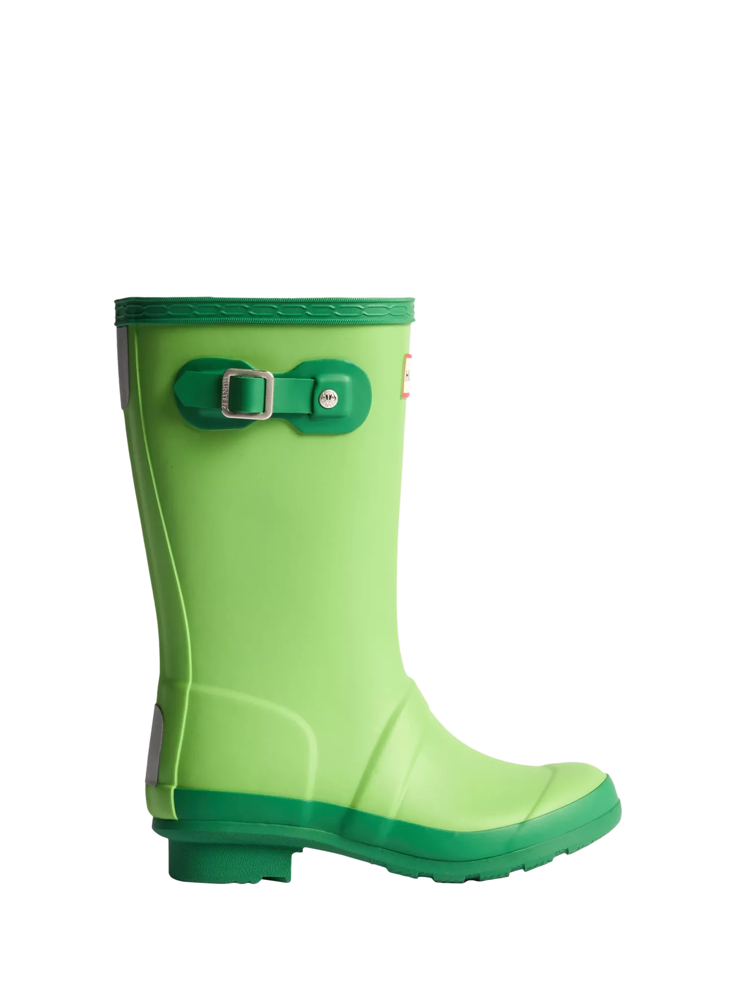 A mini version of the iconic Original Tall Boot, the Original Kids Wellington is a dream for junior explorers. This classic Hunter black waterproof boot is handcrafted from natural rubber. Designed for adventures, these specialised kids wellies are highly resistant to wear and abrasion with a polyester lining for comfort. Reflective patches and the Hunter Original tread offer added safety so you can be confident letting them take on the elements whatever the weather.
