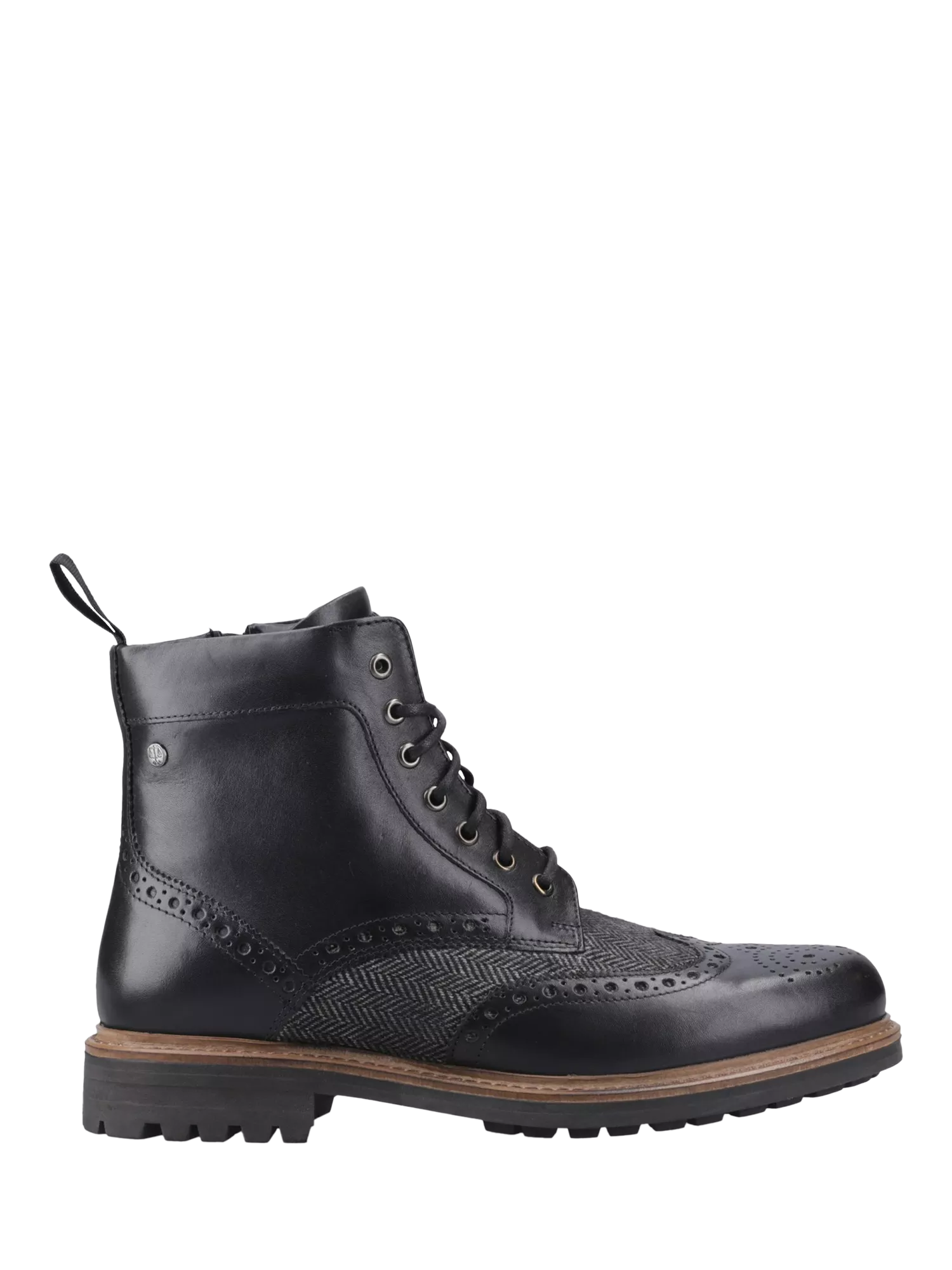 The Loch Brogue Country Ankle Boot is a stylish all-terrain lace-up. Combining soft premium leathers and herringbone weave, with a fashionable wing-tip brogue for modern style. A high-grip rubber sole, with mud releasing tread pattern, offers great grip.