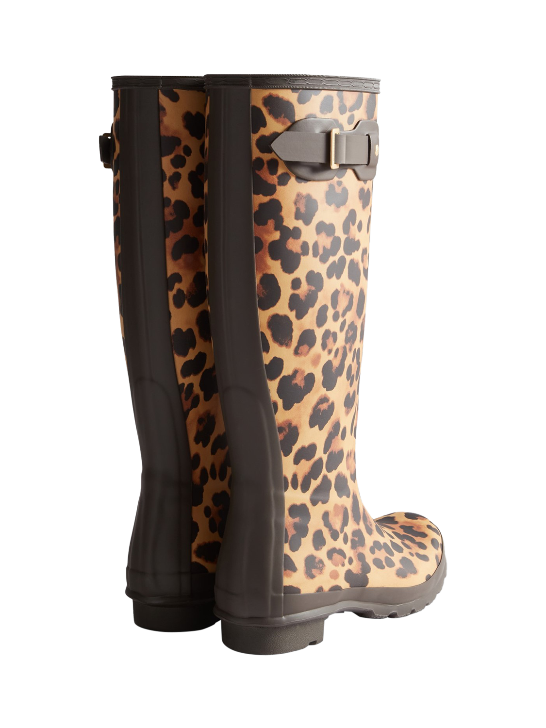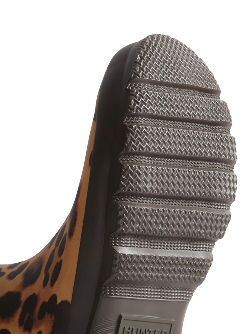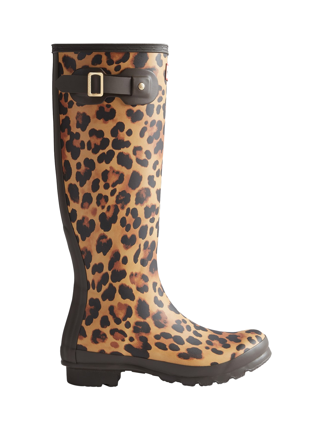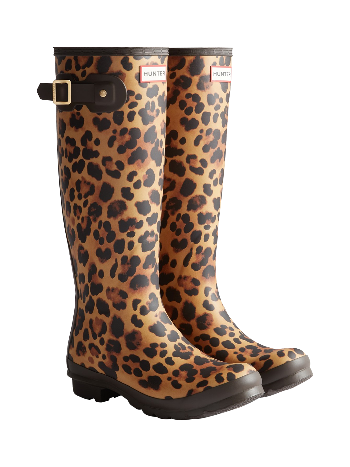 Featuring the Hunter Original tread pattern, an updated 100% recycled polyester lining and insole, these tall Leopard print welly boots are a rainy-day necessity.