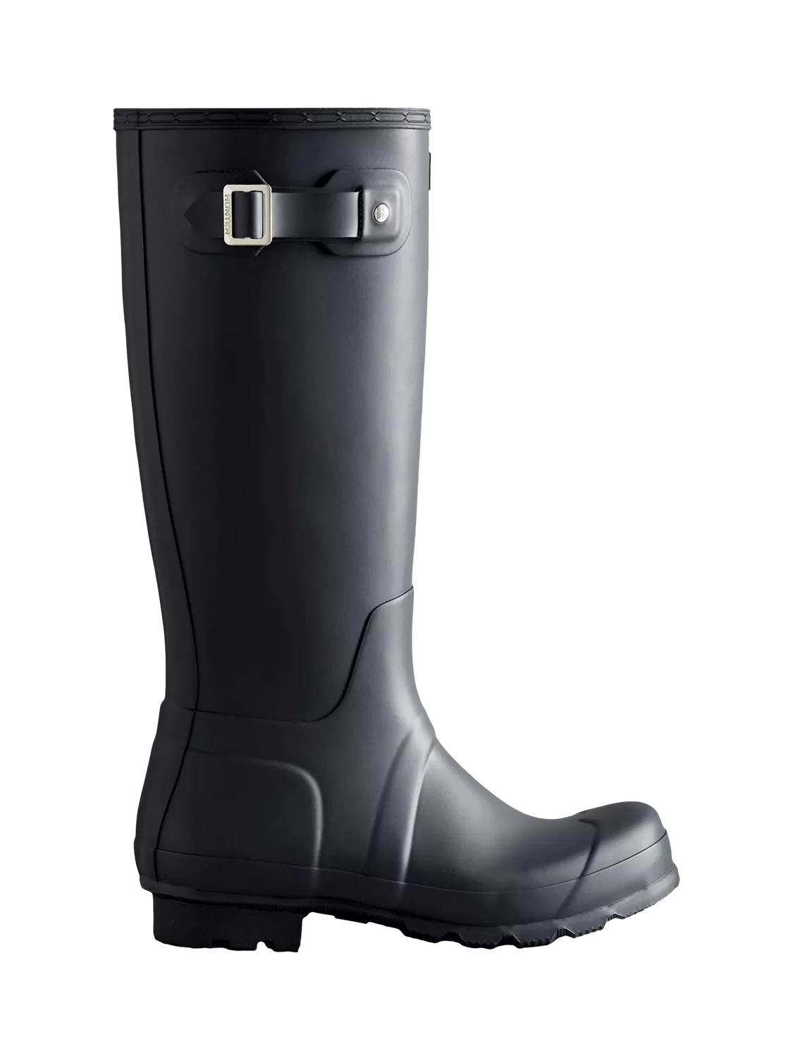 Ideal for wet weather conditions, this men's Wellington Boot has been the heart of the Hunter Original brand since 1956. Formed of natural rubber, each pair is made from 28 hand-cut parts. Formed of natural rubber, each pair is made from 28 hand-cut parts and assembled over three days on an aluminium last bespoke to Hunter, before being vulcanised for superior protection. These tall welly boots are a rainy-day necessity, featuring the Hunter Original tread pattern and a comfortable polyester lining.