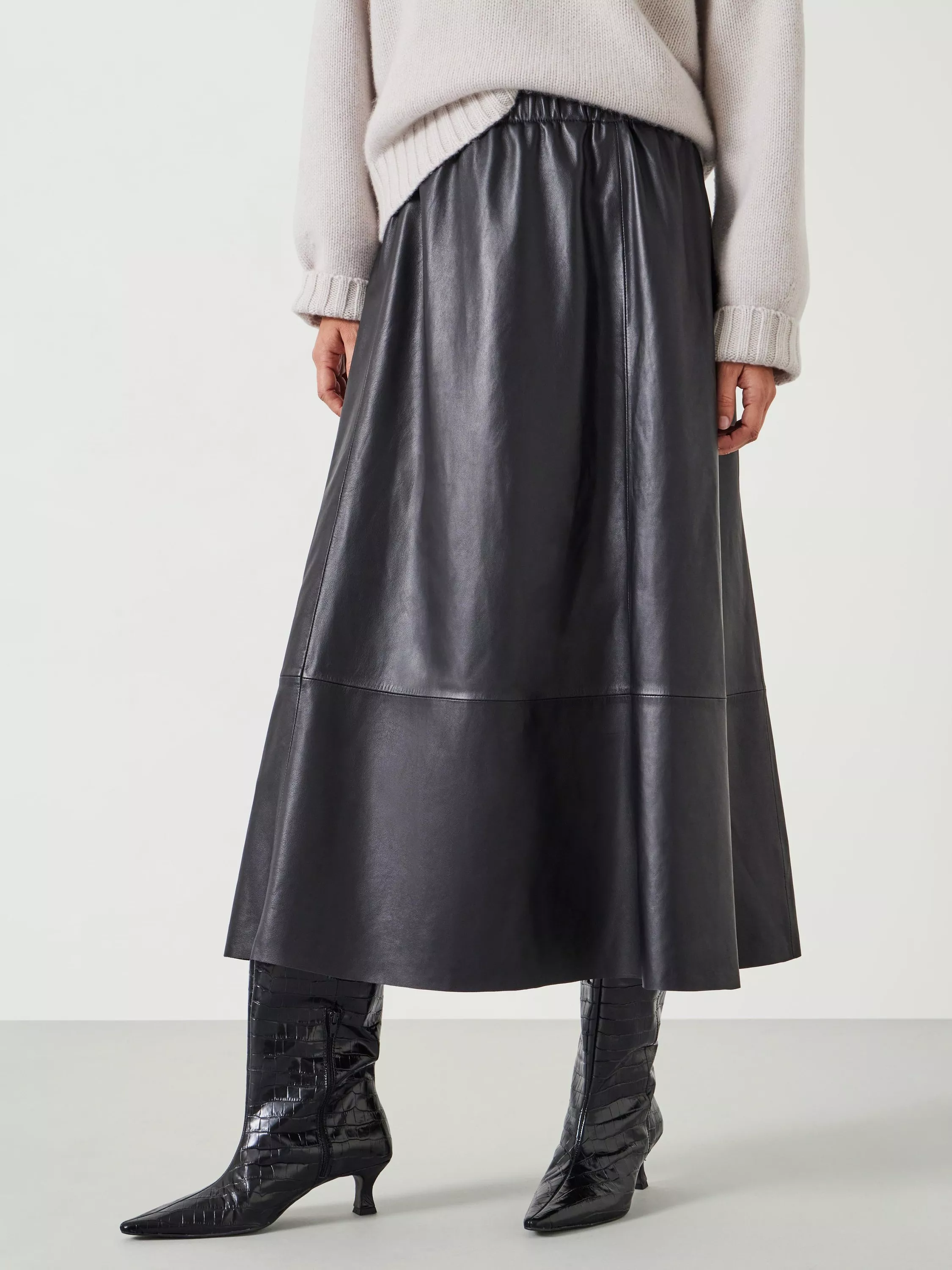 Crafted in pure, butter-soft leather in a panelled design, our Agatha midi skirt is a great way to bring on-trend texture to this season's looks - whether it's paired with fluffy knits or casual sweatshirts up top. We've given it an elasticated waistband for a clean look, not to mention comfort. We'll be styling ours with pointy boots one day, trainers the next.