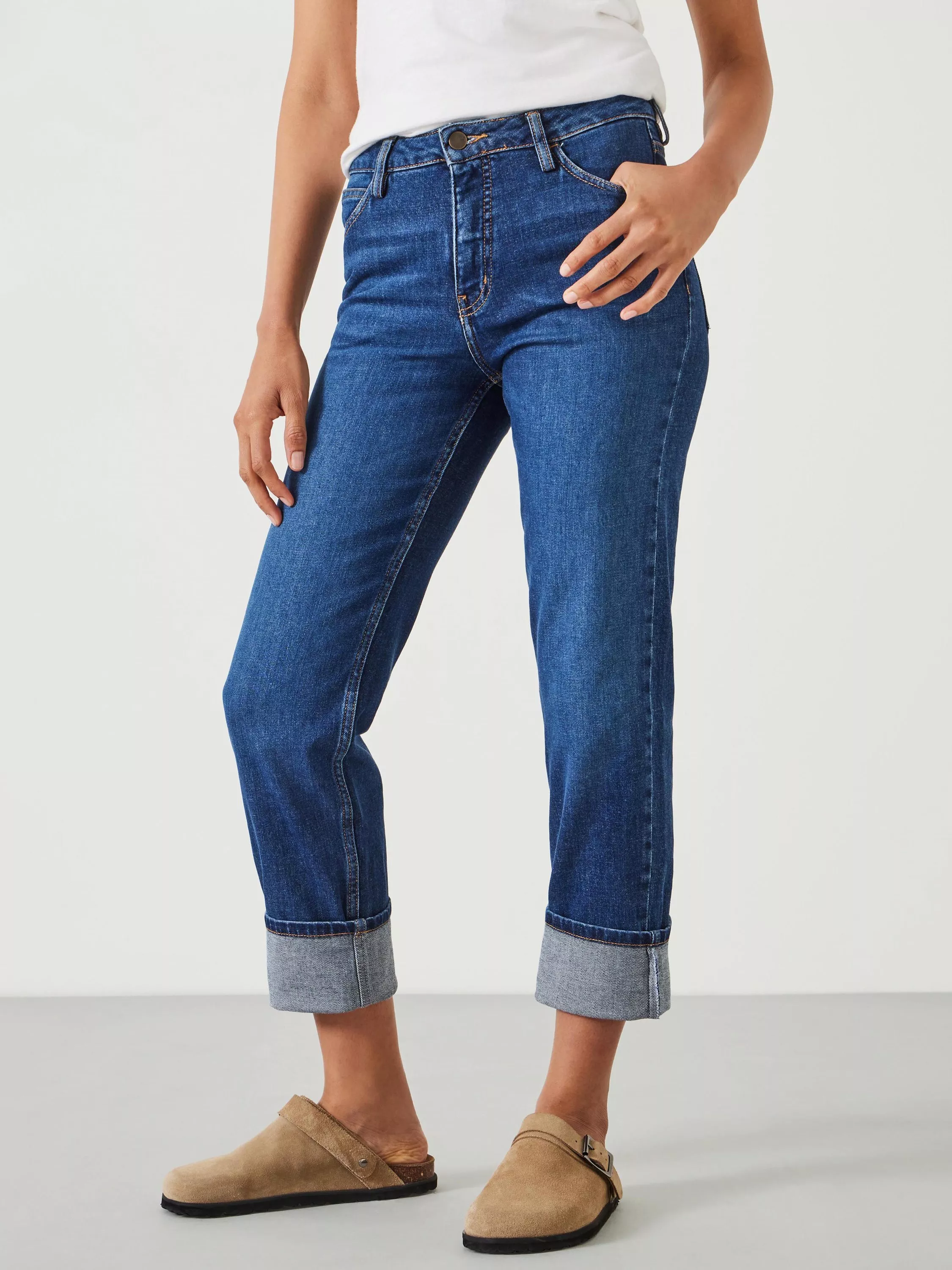 Offering both comfort and ease with a straight-leg silhouette, these mid rise jeans from HUSH are made from classic denim and have a turn-up hem.
