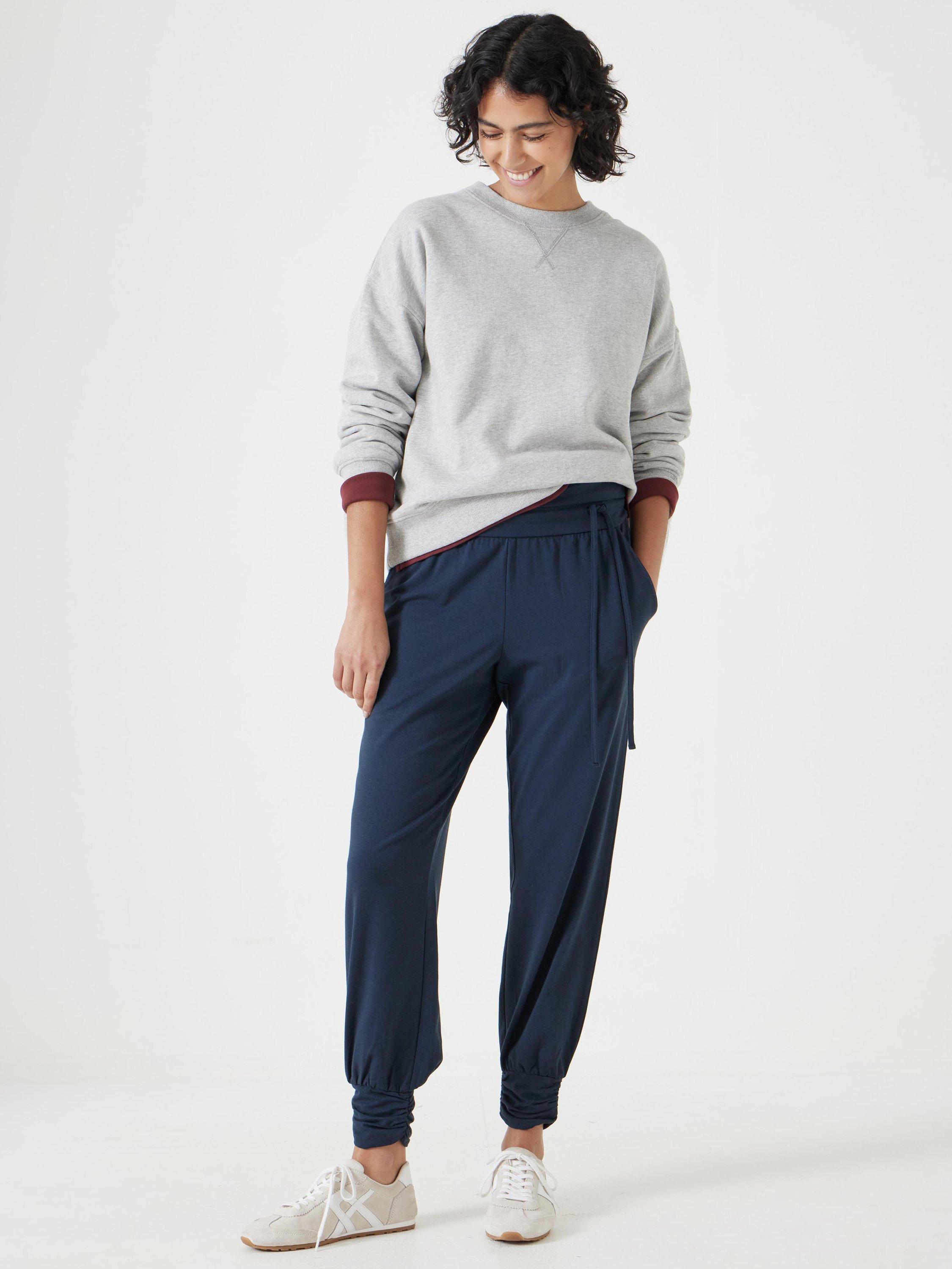 Comfy trousers that feel like leggings but look like we've made a touch more effort? Our much-loved harem pants hit the sweet spot, made from a stretch cotton-modal blend that's super soft with a deep, fold-over waistband that's so flattering. Their legs slim down at the calf and finish with pretty gathered details at the ankles. Oh, and did we mention, they've got pockets?