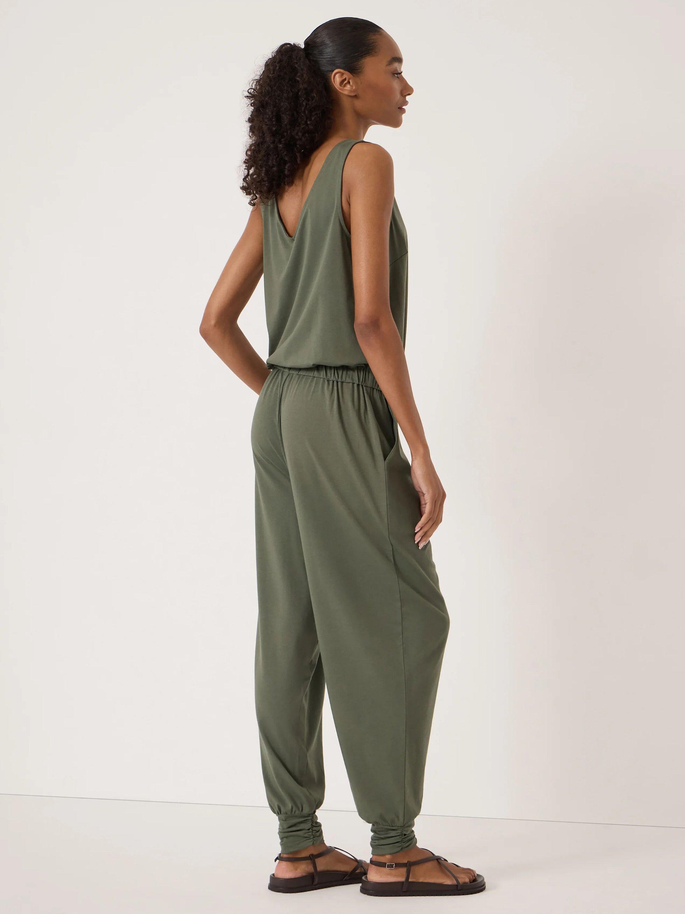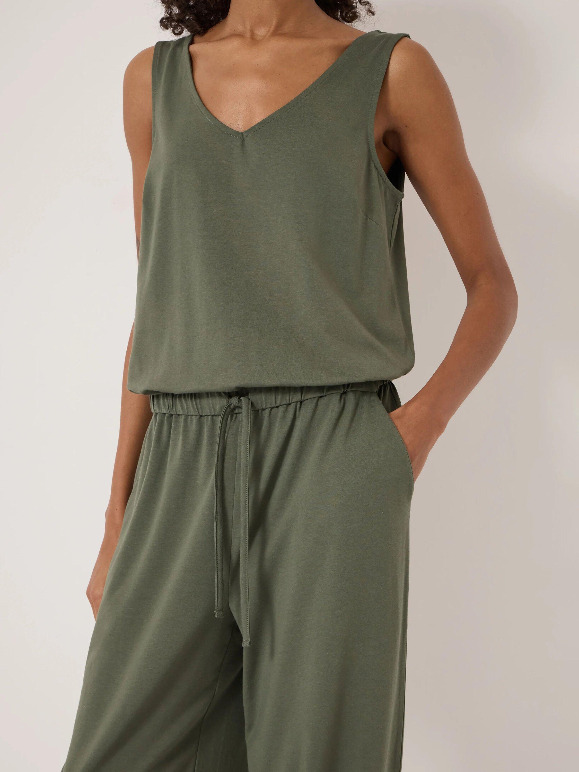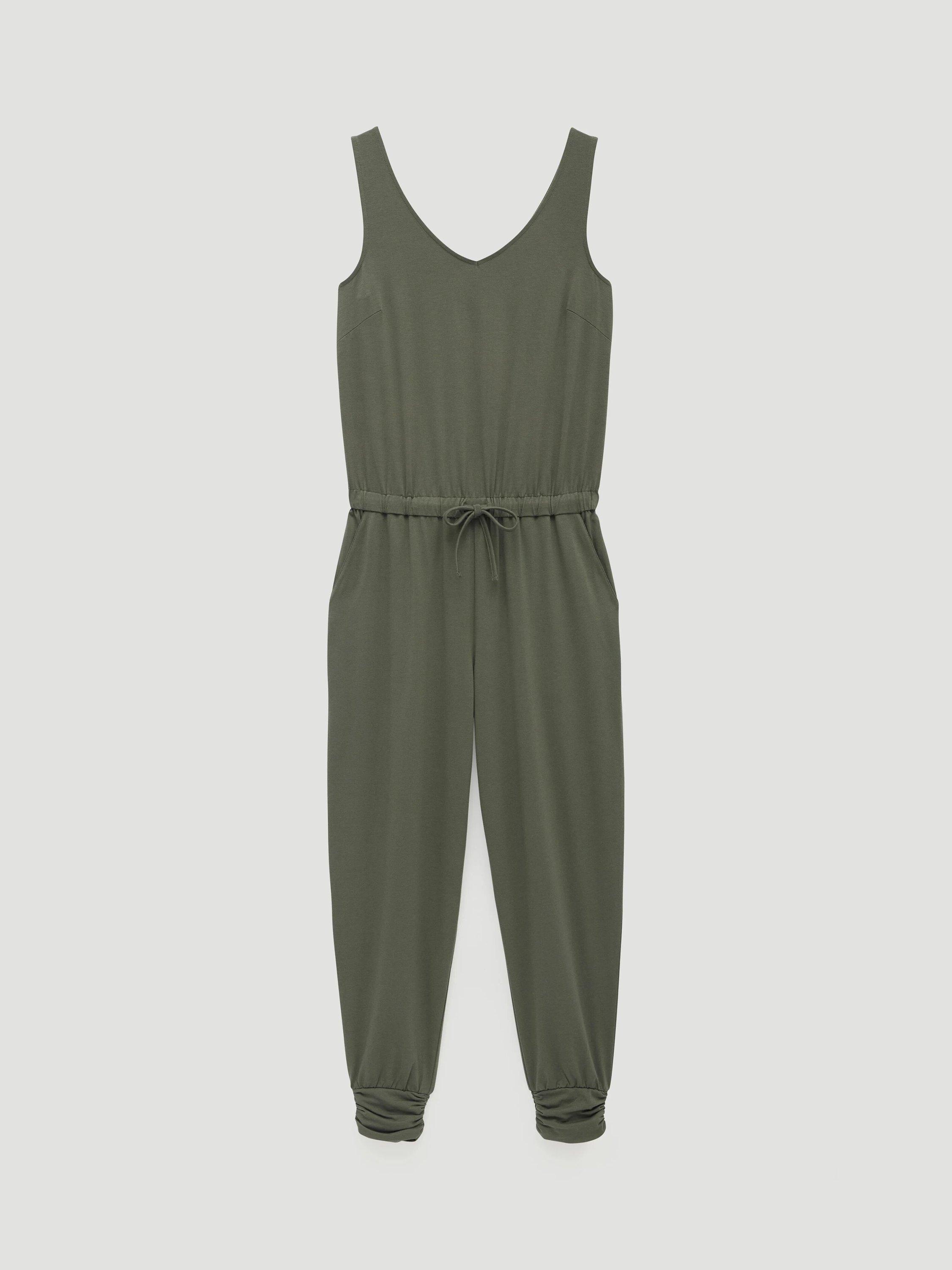 Confidently step into your day with this sleeveless, drawstring waist jumpsuit. Soft, flexible fabric ensures comfort, while the V-neck and streamlined fit offer effortless style that carries you from casual days to moments out.