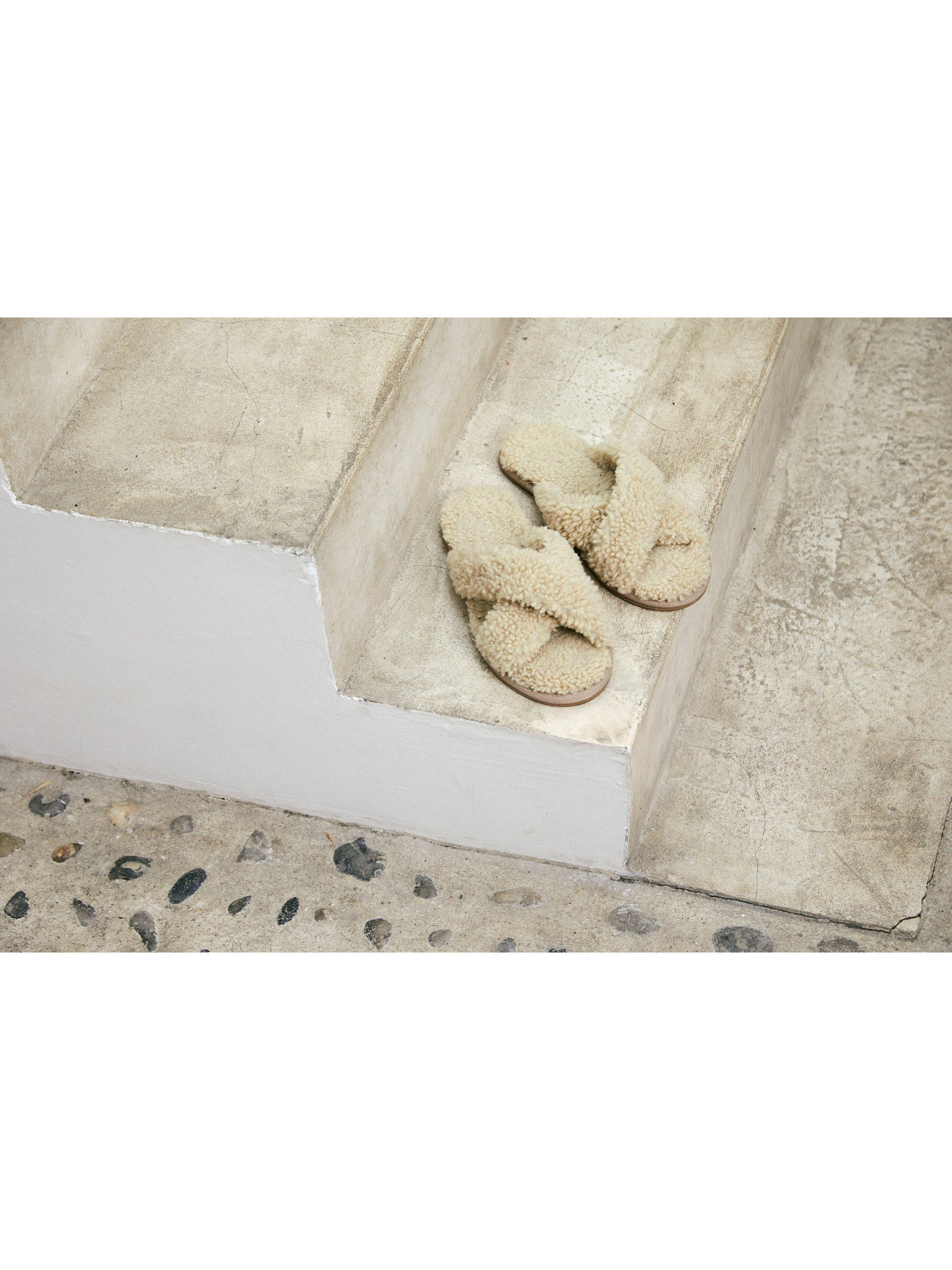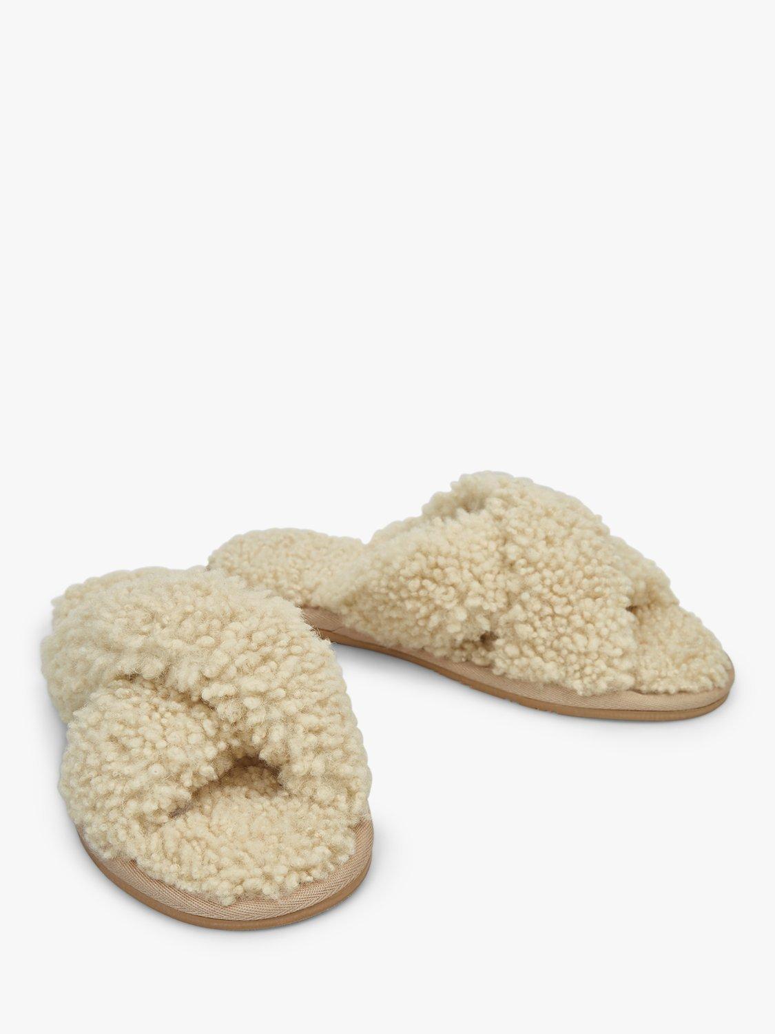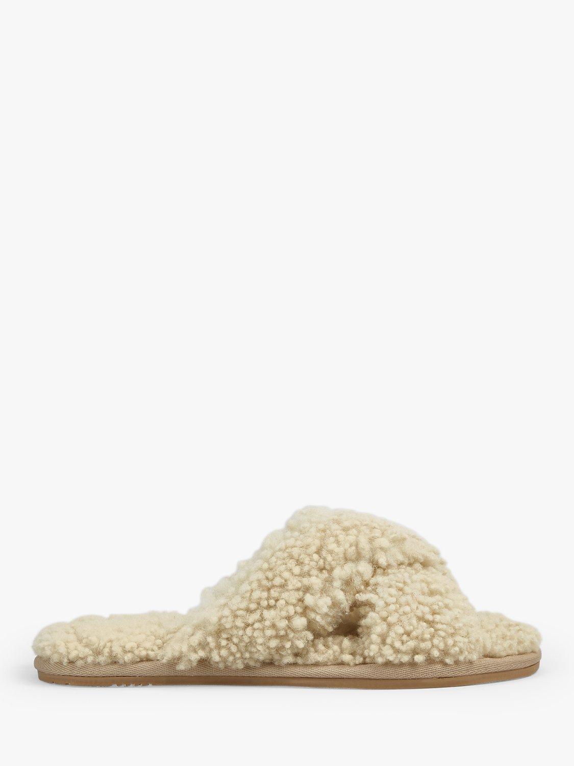 Slipping on with ease for relaxing at home, these slippers by HUSH are lustrously lined with soft sheepskin for warming wear.
