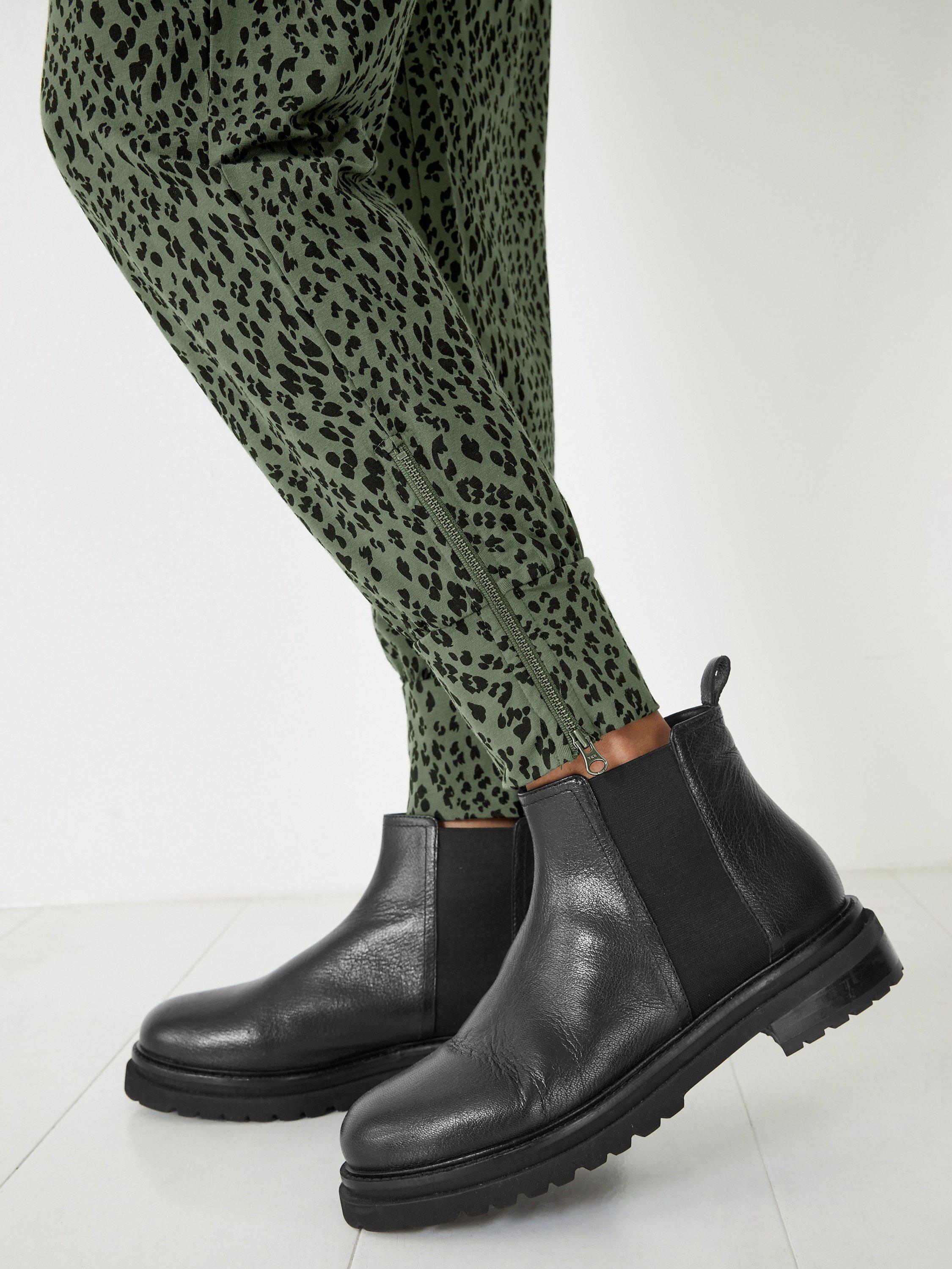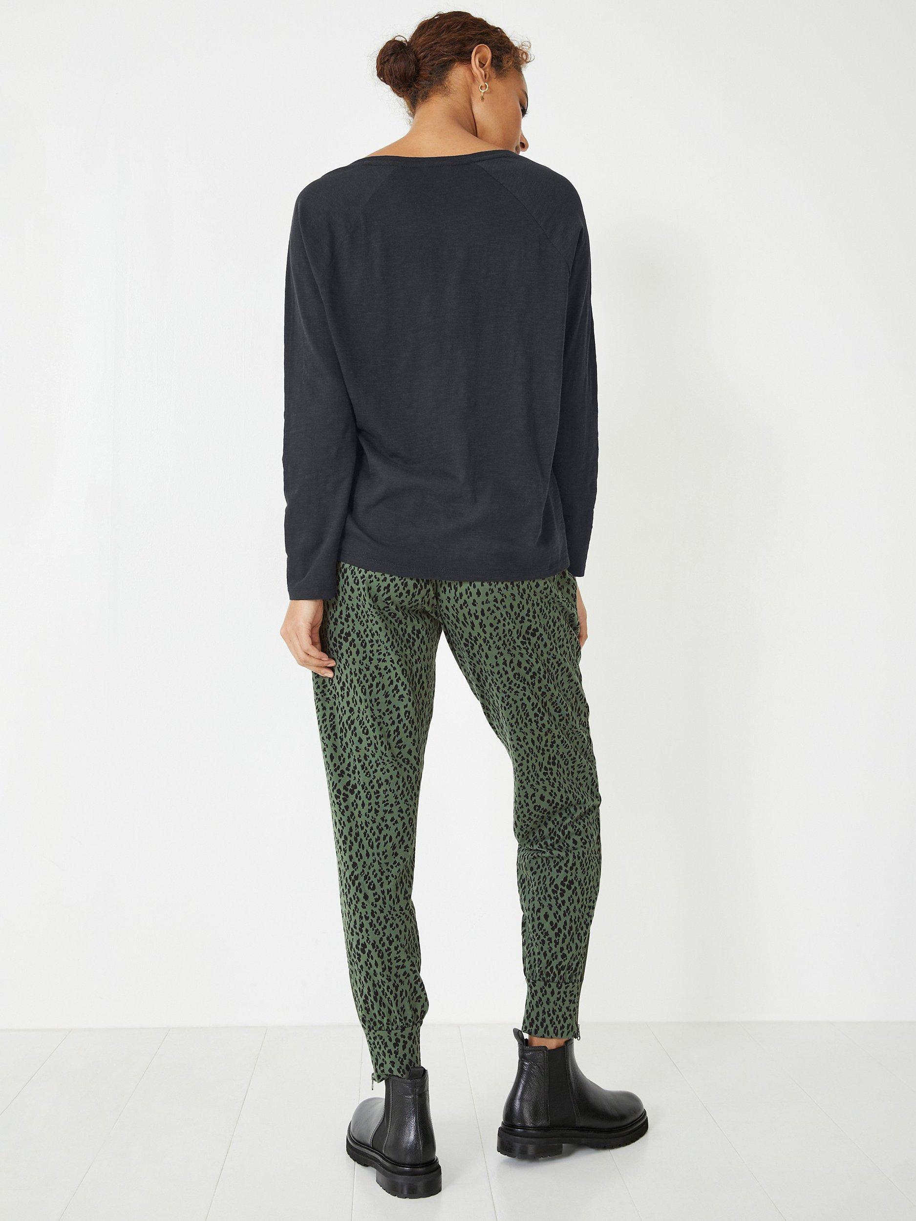 Crafted from a soft cotton blend with a drawstring waistband, gently tapered leg and two neat slanted side pockets to flatter the shape. Two faux pockets to the back and side zip detail on the legs complete this relaxed style.