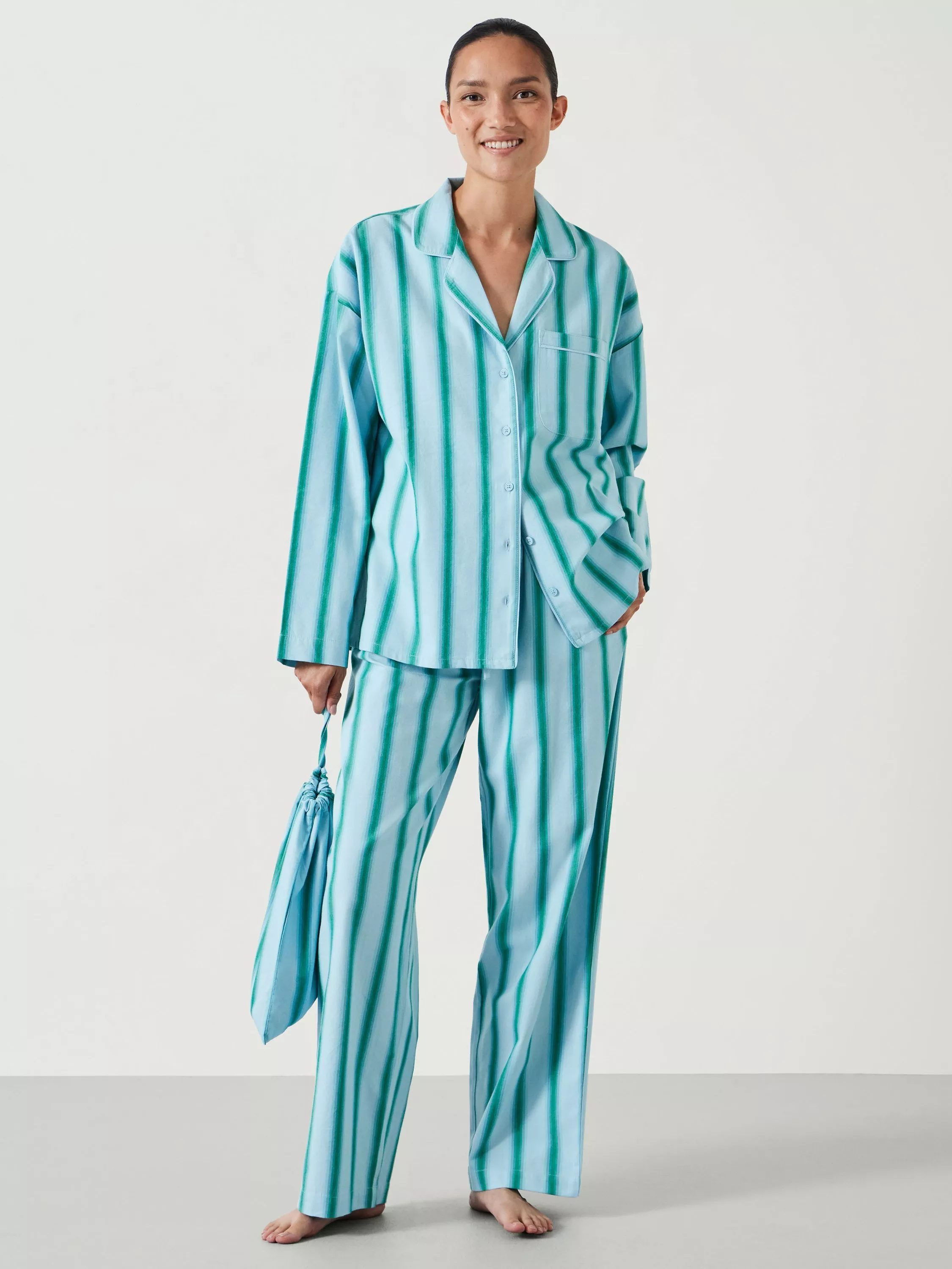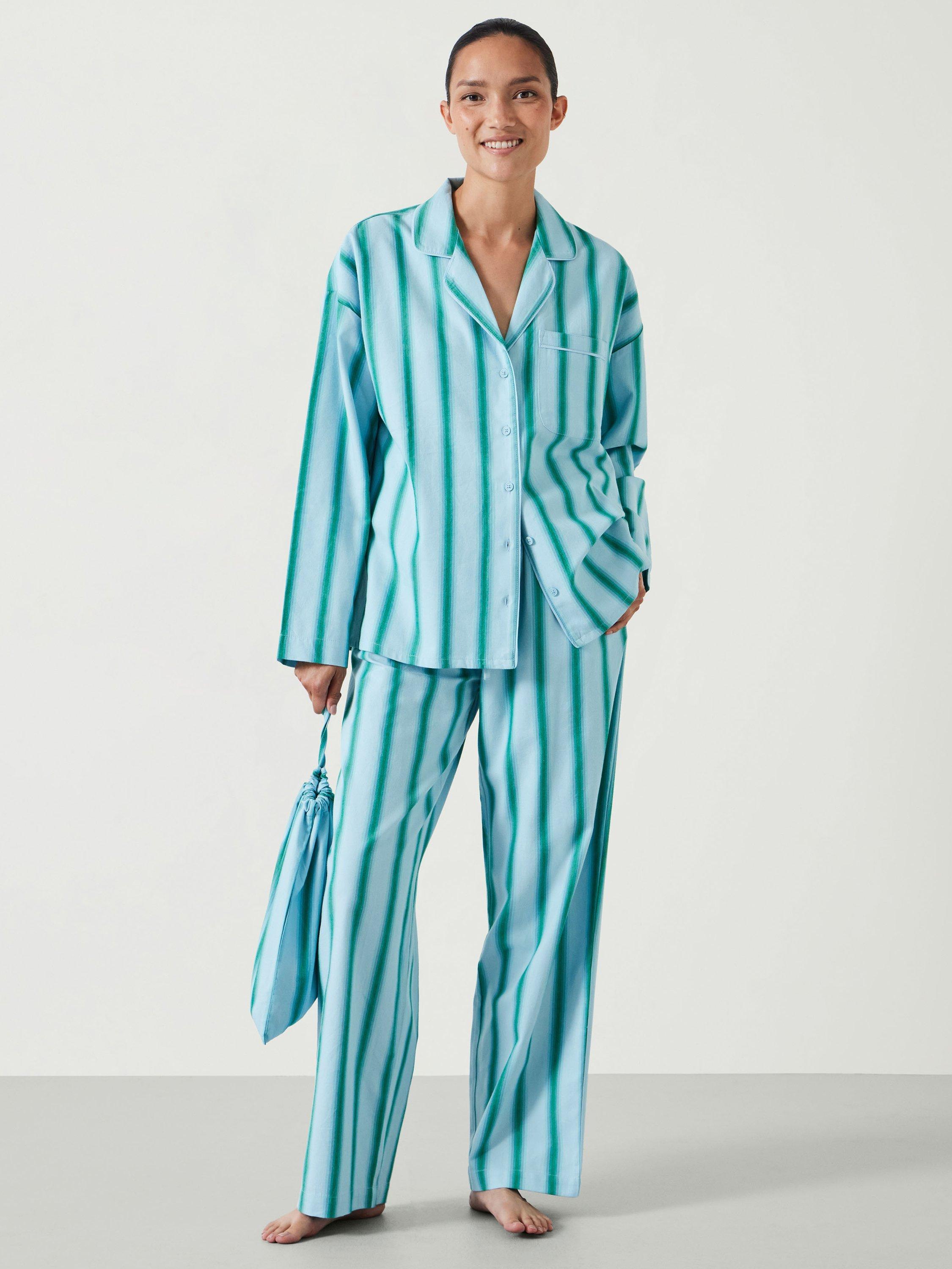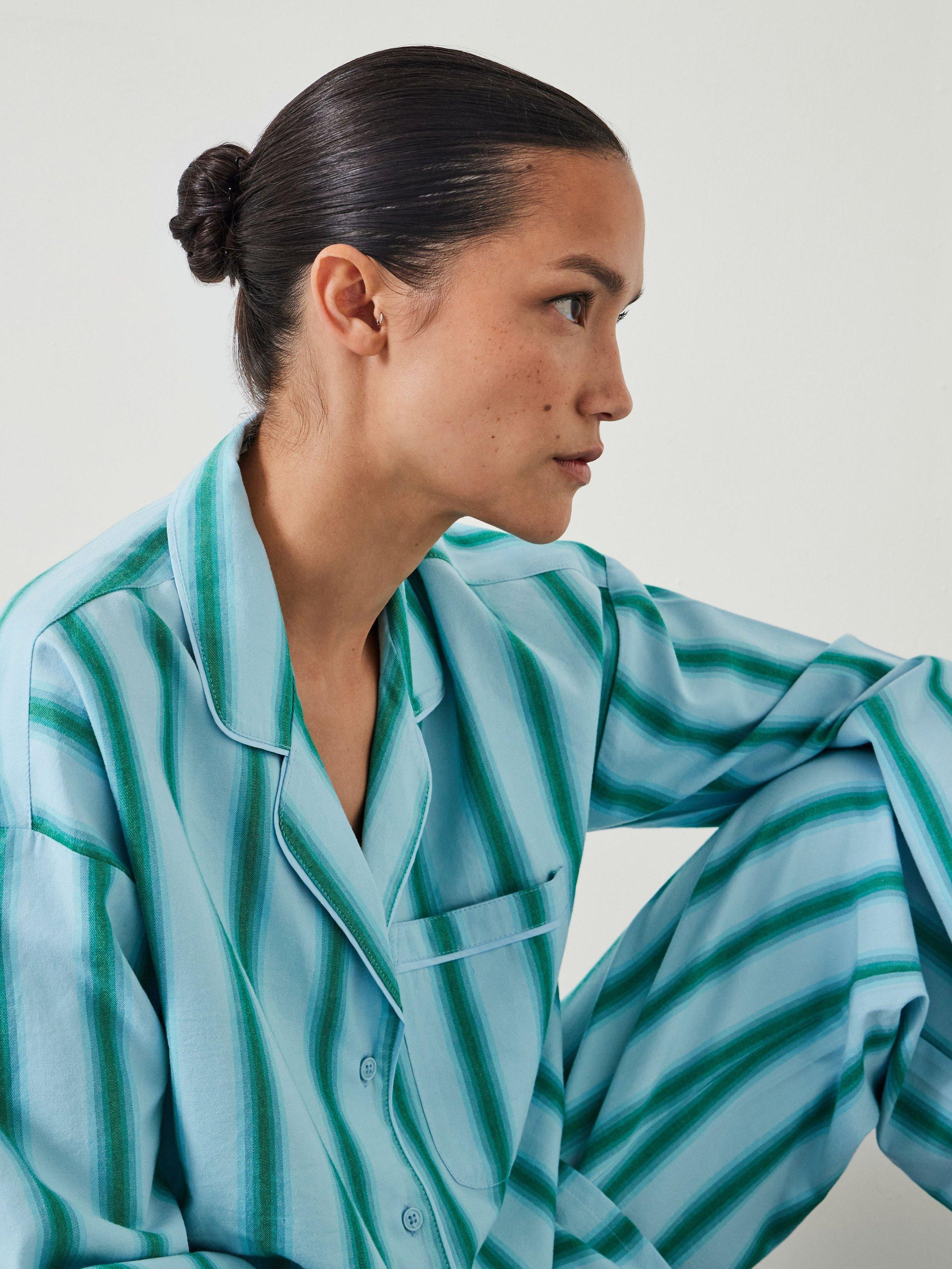 Winter nights just got so much better. The Amita pyjamas are some of our softest ever, made from a wonderfully cosy cotton blend with a yarn-dyed stripe pattern in ombré. We love the classic piped detailing around the shirt, and we gave the trousers a thin, elasticated waistband and drawstring for unrestricting comfort.