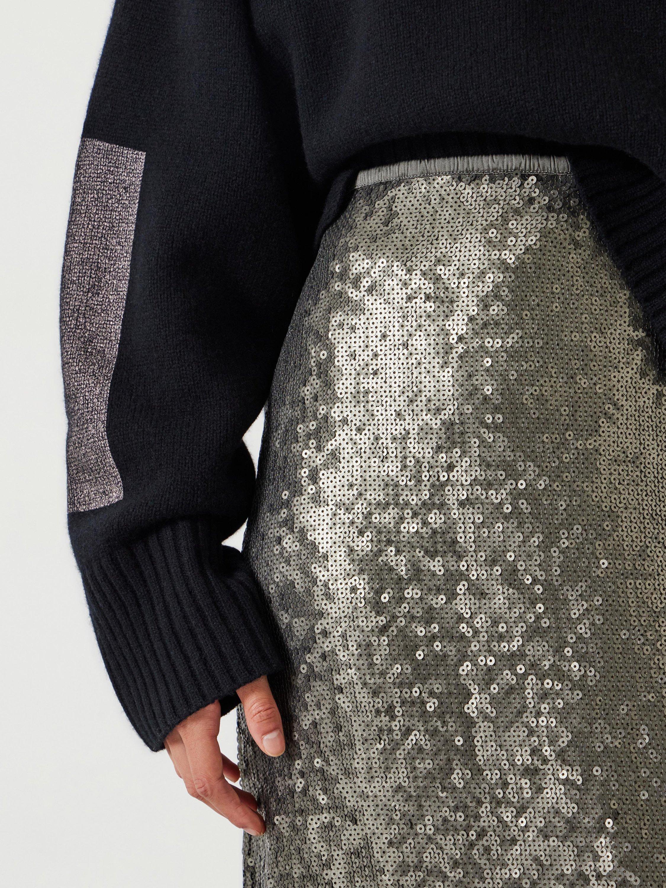 Sequins during the day? Absolutely. The Anais maxi skirt is dripping in them, but they're backed onto stretch-jersey mesh, so it doesn't have that restrictive feel you'd ordinarily expect. Our favourite way to wear it is by going for something way more casual up top, like a slouchy sweatshirt or printed tee for a laid-back look.