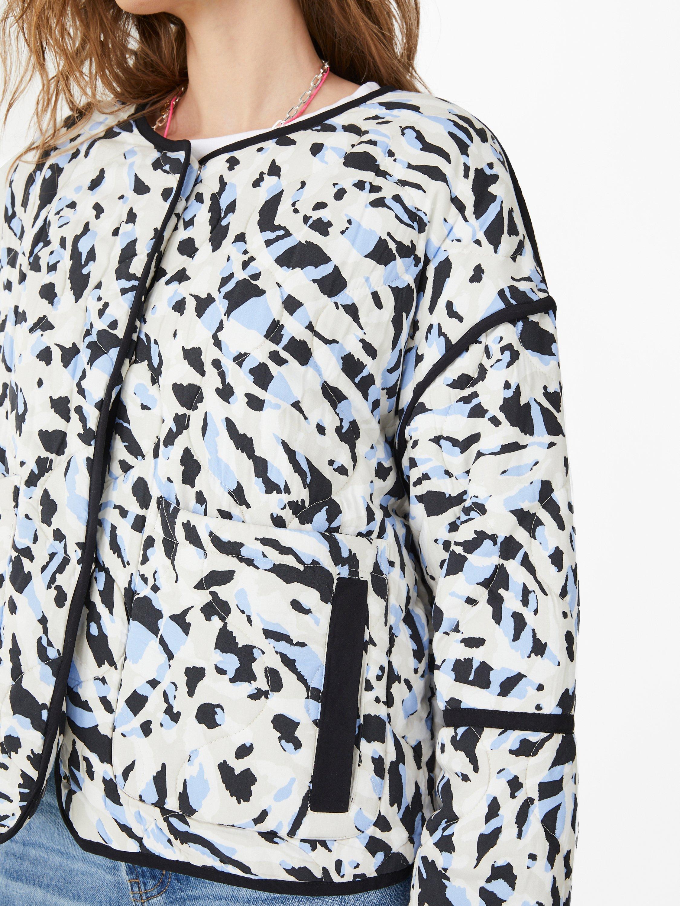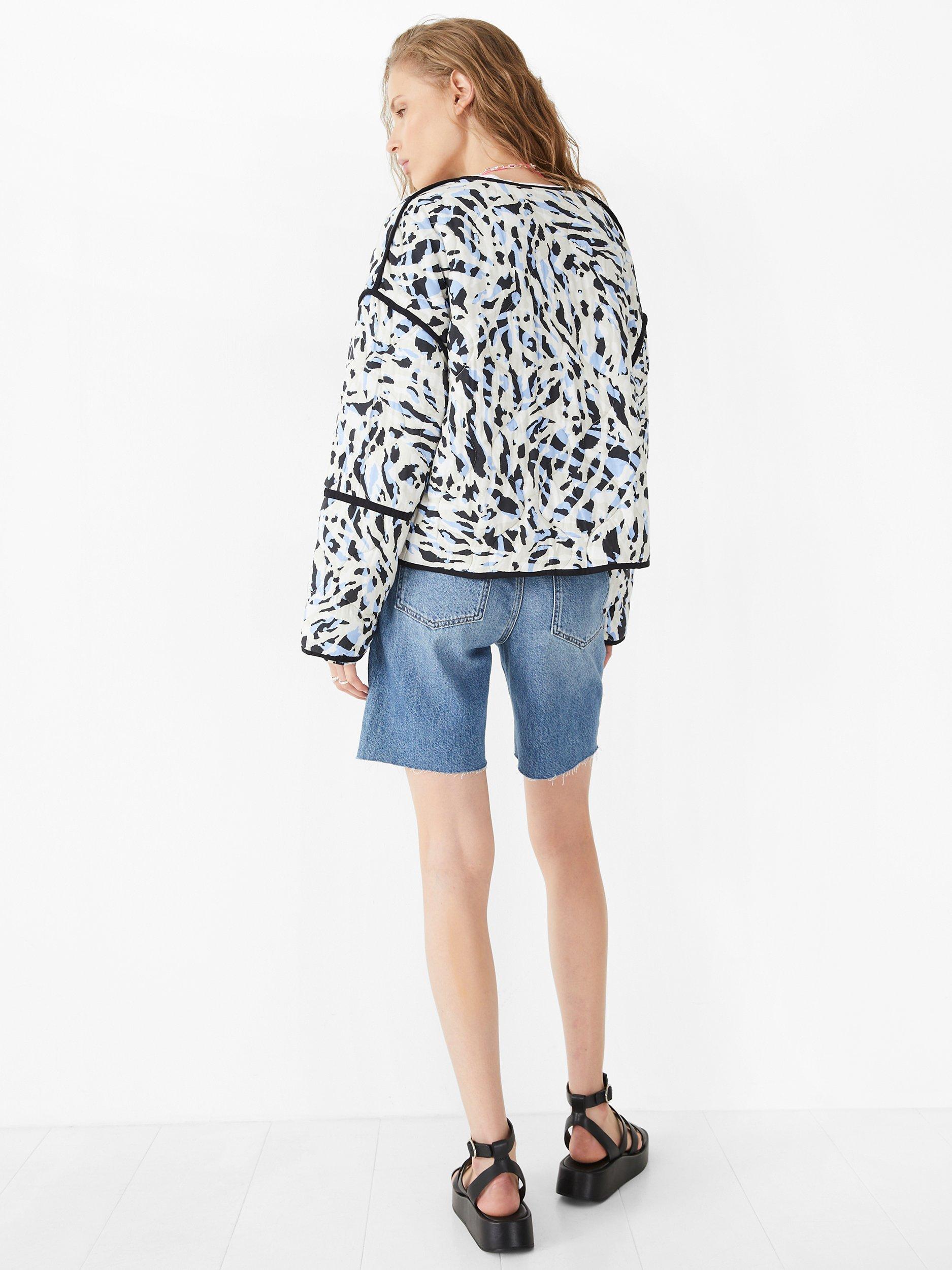Designed with an open neck for a casual vibe and boasting a striking abstract print, it is made from a smooth fabric for lightweight wear.