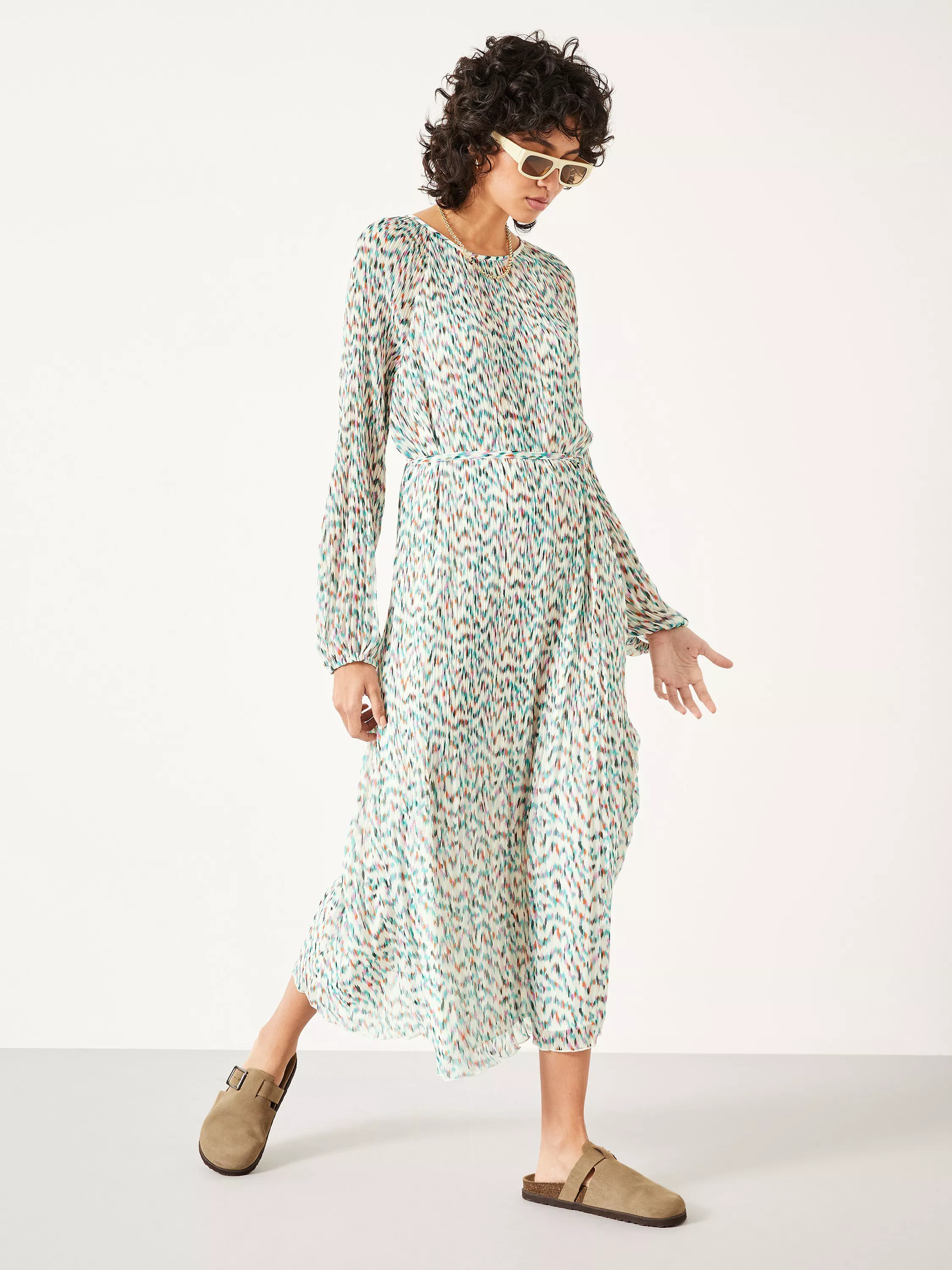 Designed in a simple but effective straight shape, this mid-length dress from HUSH comes made in a durable, synthetic fabric. Defined with a conventional round neckline and long sleeves, it intrigues with an abstract print.