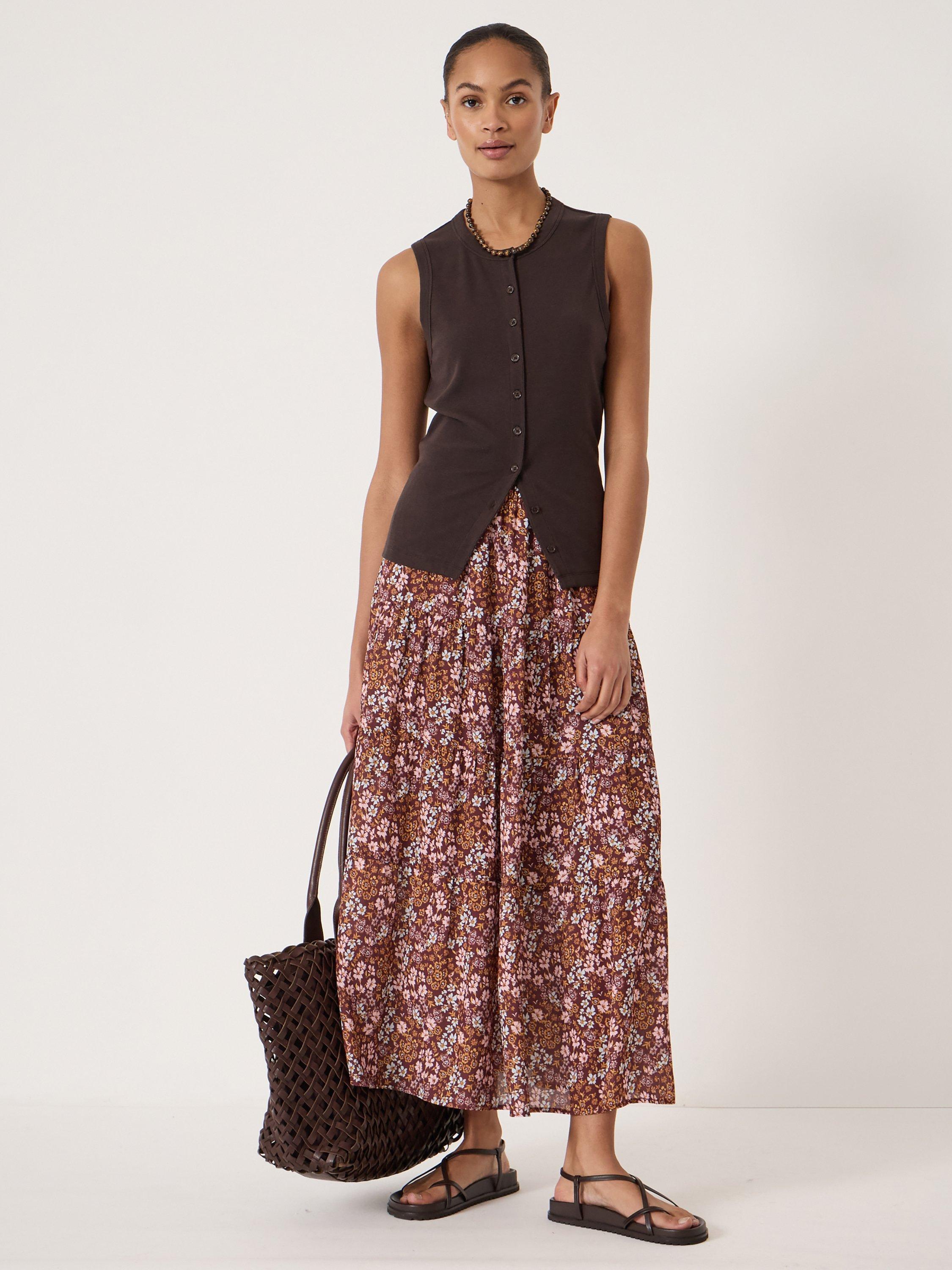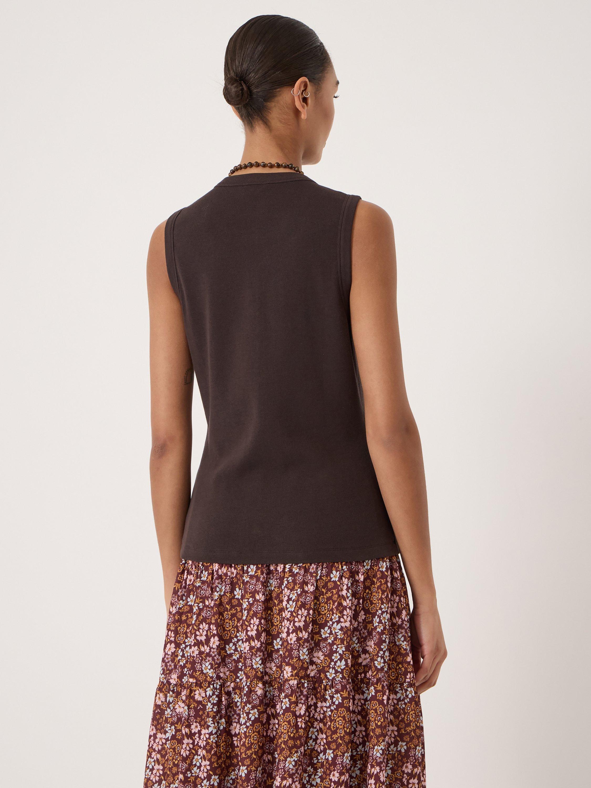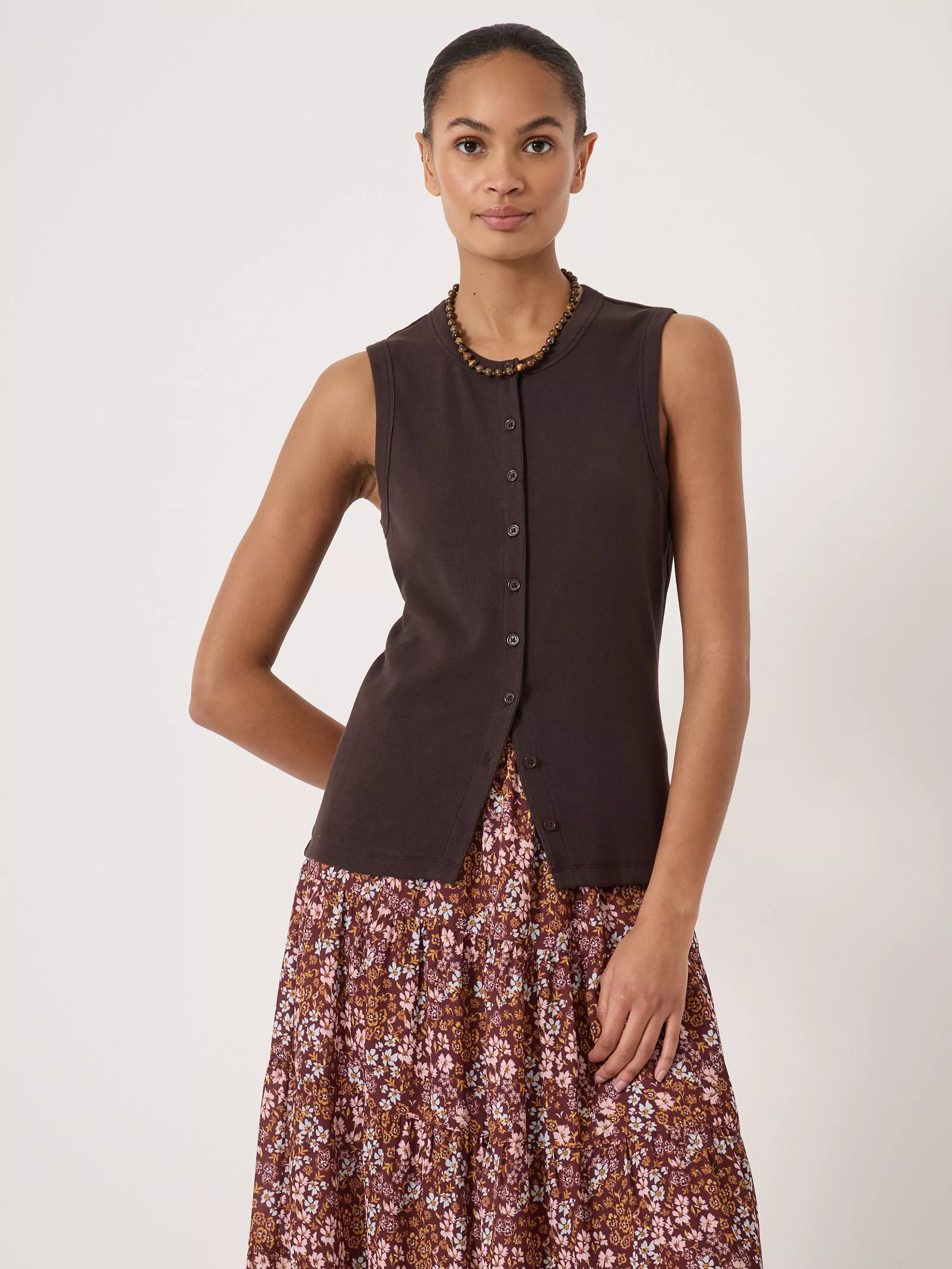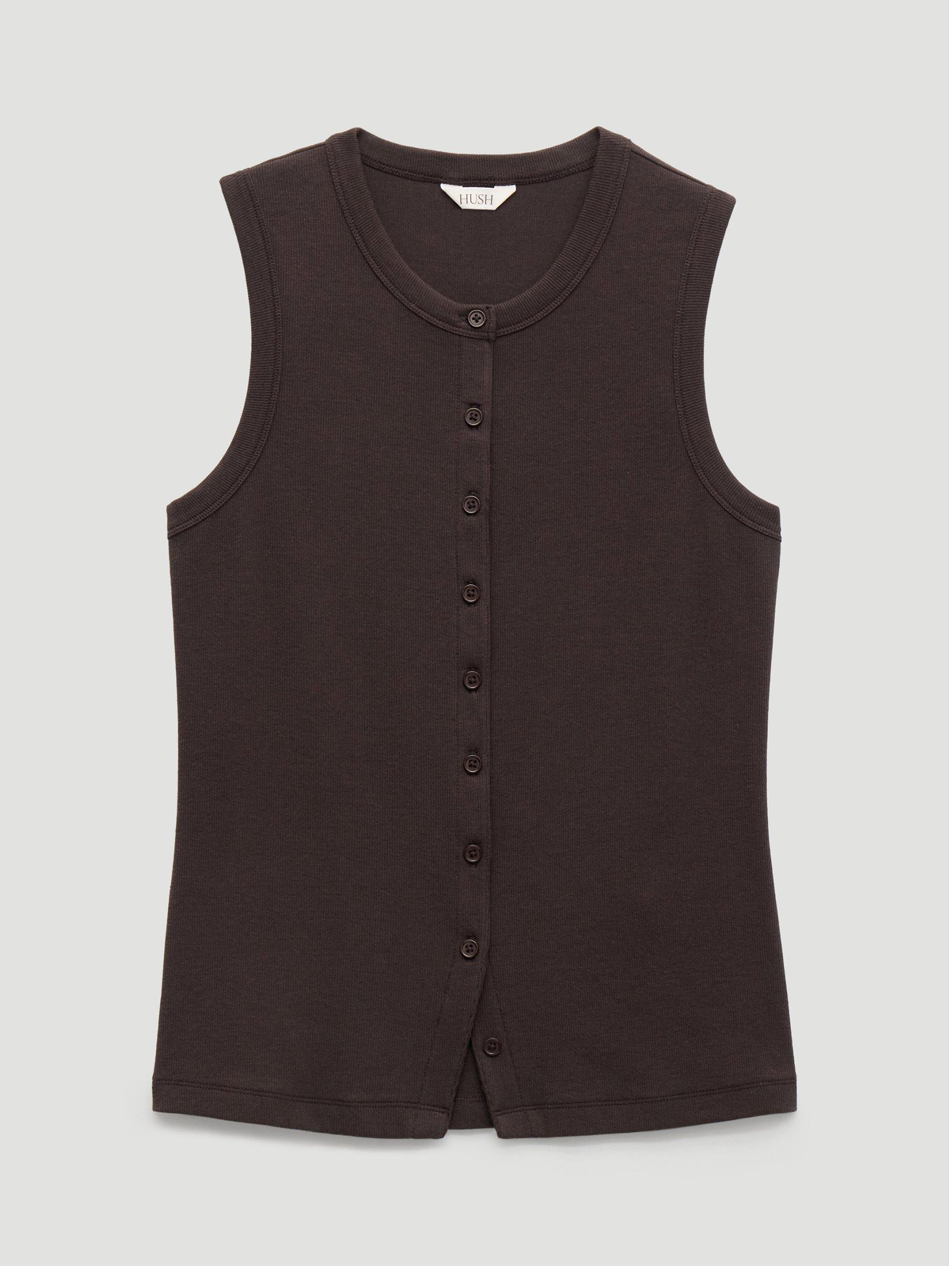 HUSHAyana Button Down Ribbed Vest Top, Dark Brown