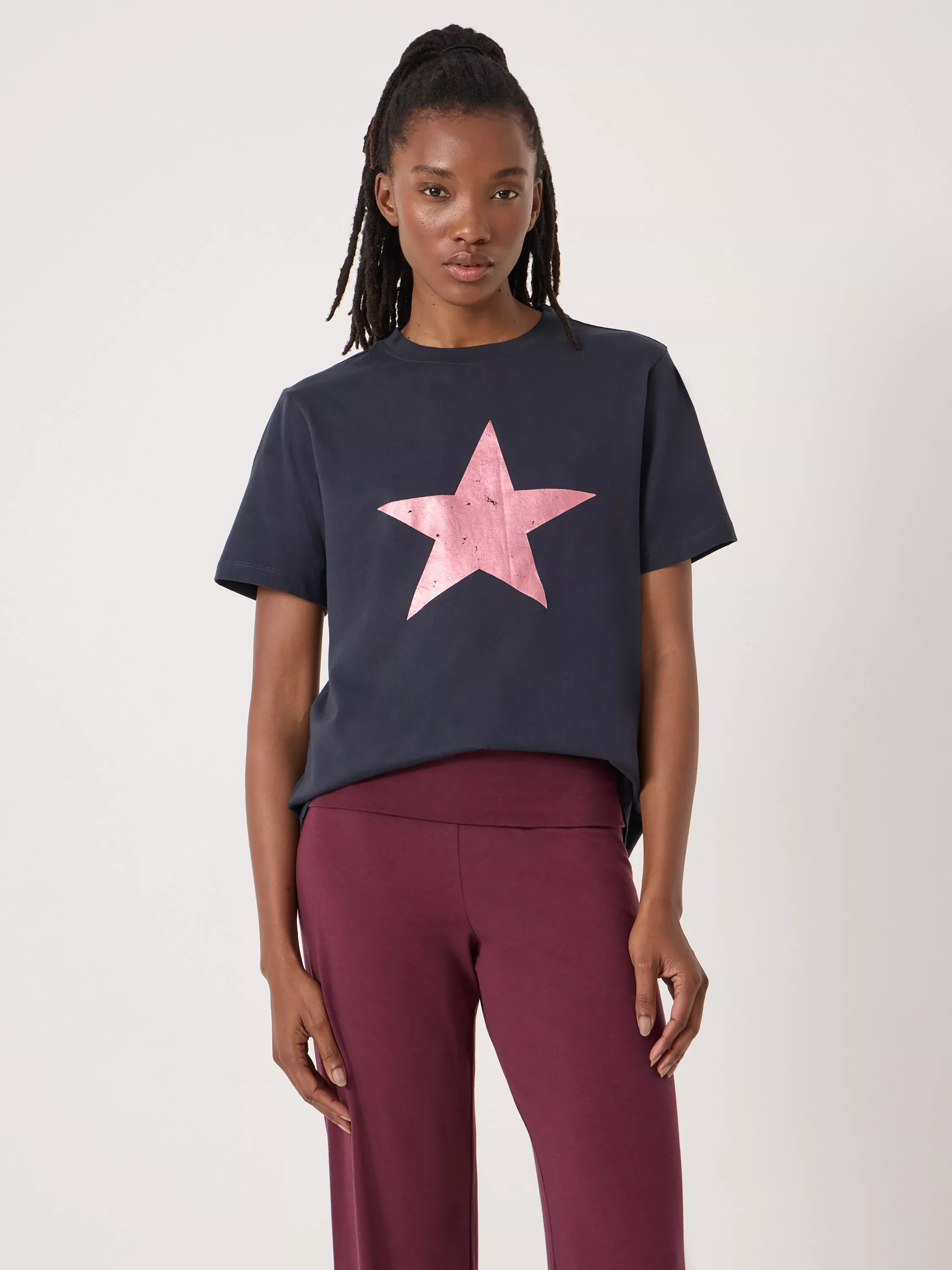 An easy way to make loungewear feel more exciting? Add metallics. It doesn't have to be dramatic, a simple star motif will do – just like the Bea T-shirt. Something about it feels more considered and purposeful than going plain, whether pairing it with jeans or joggers.
