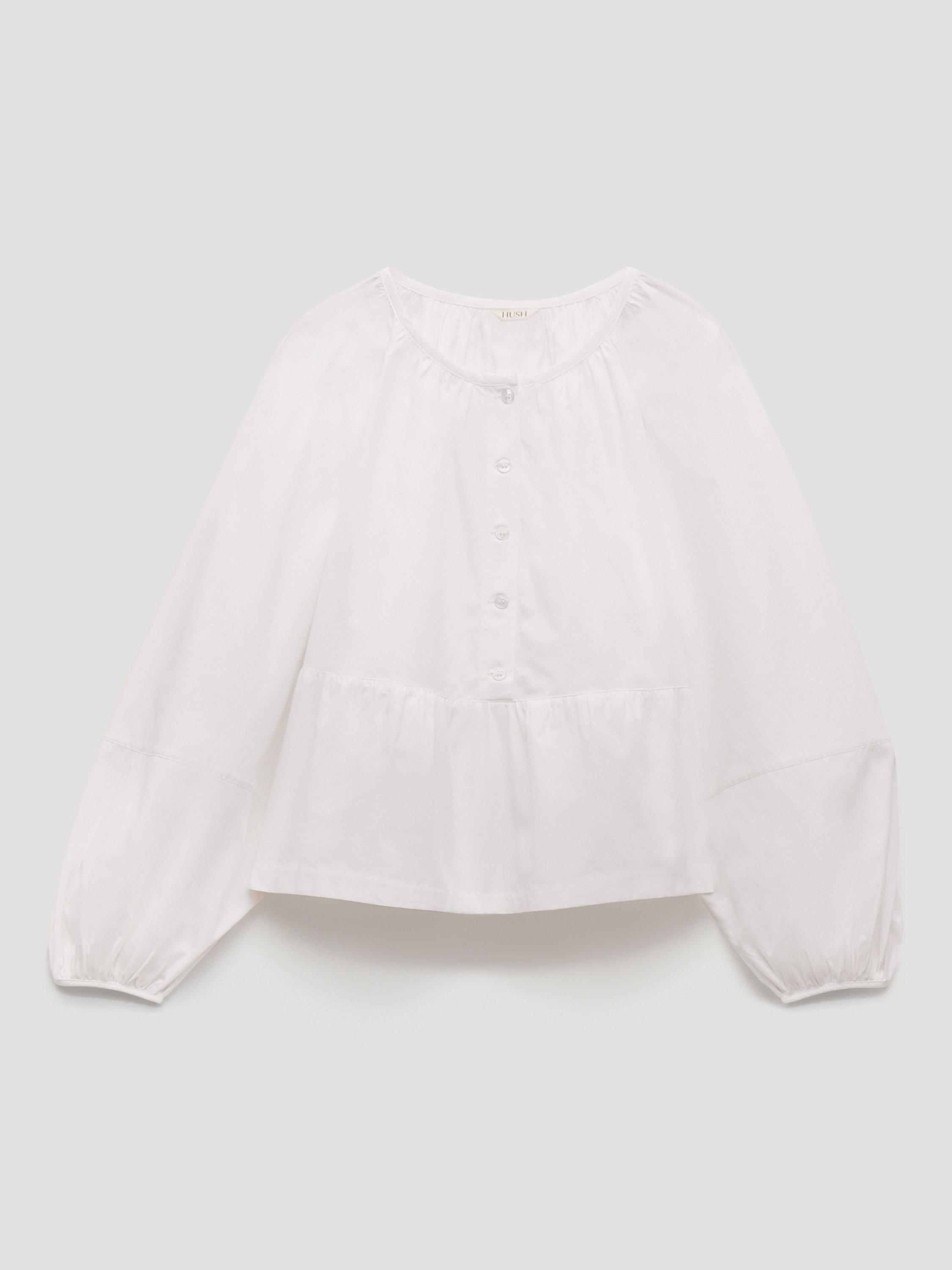 A blouse by HUSH, made from cotton for comfortable wear. Featuring a round neck and long puff sleeves, the plain design means it goes with everything. A wear-everywhere essential.