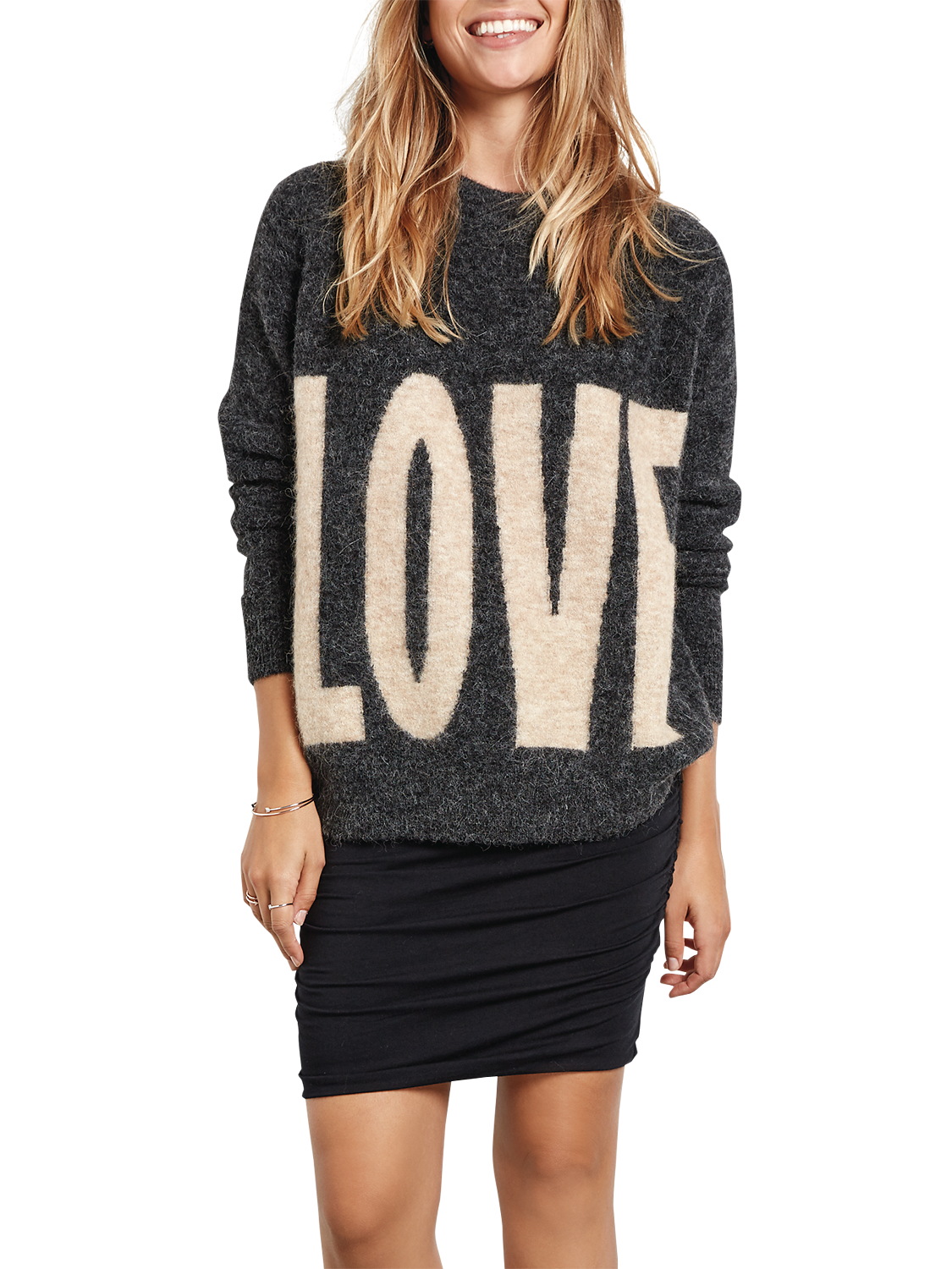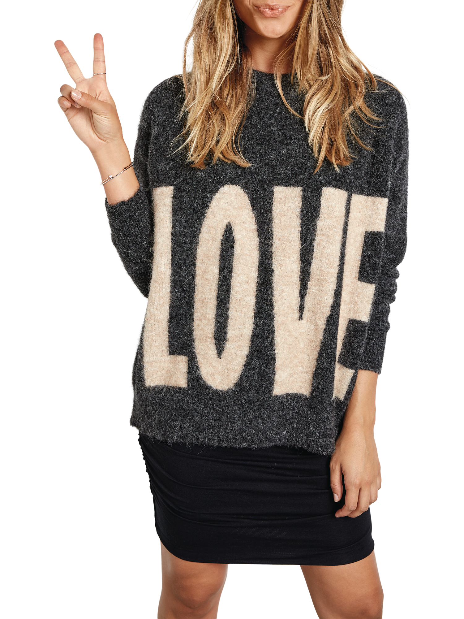 Made from a soft wool blend, this item offers both comfort and confidence. It is designed in a relaxed, oversized fit and features a round neck, long sleeves and sits just below the hip. The detail is left to the 'LOVE' slogan.